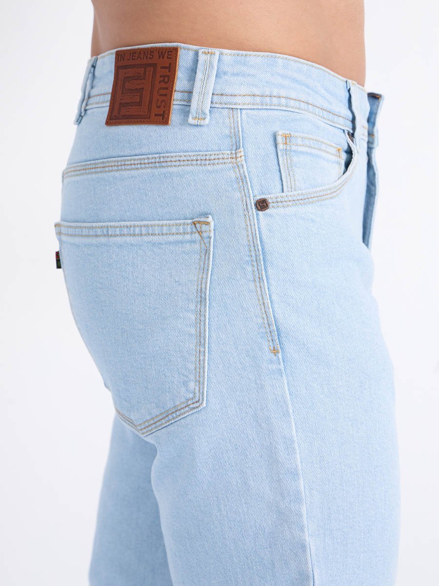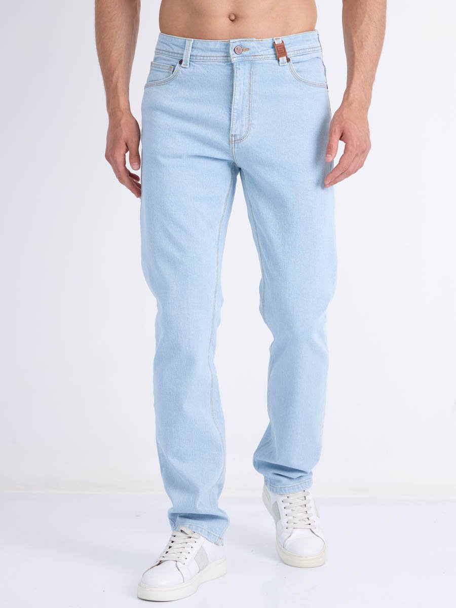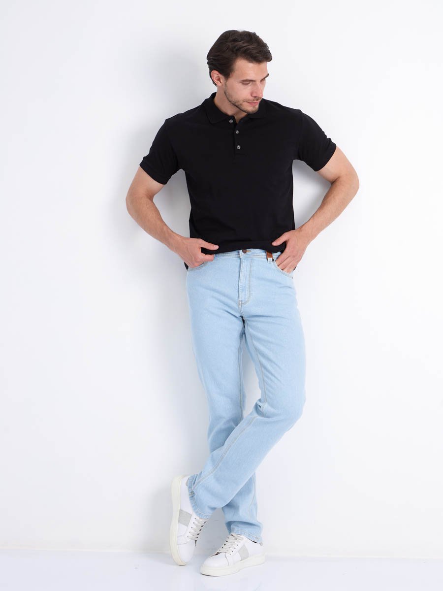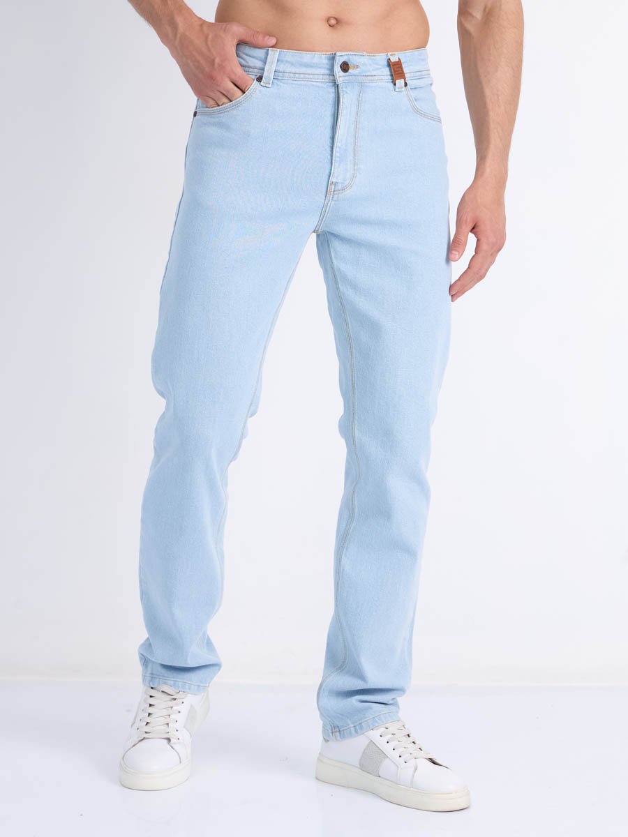 Мужские классические джинсы с пятью карманами. Посадка Regular fit (полуоблегающие по бедру), высокая талия. Застежка на молнии. Зауженные к низу. Выполнены из слабоэластичной ткани denim comfort stretch. Классическая светлая стирка "stone wash"с отбеливанием.