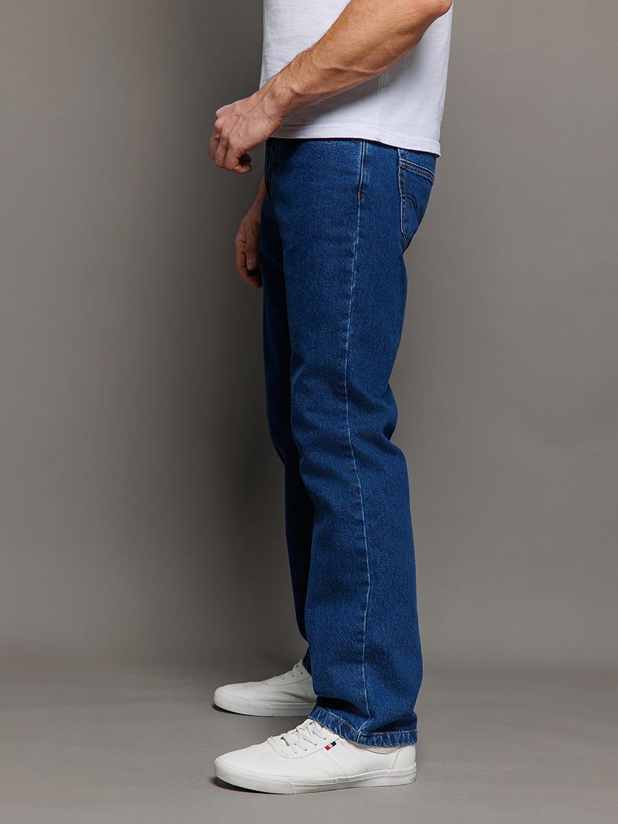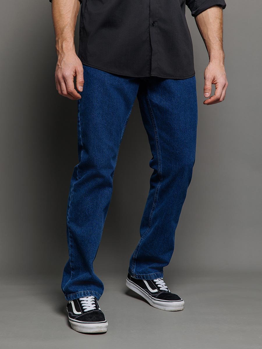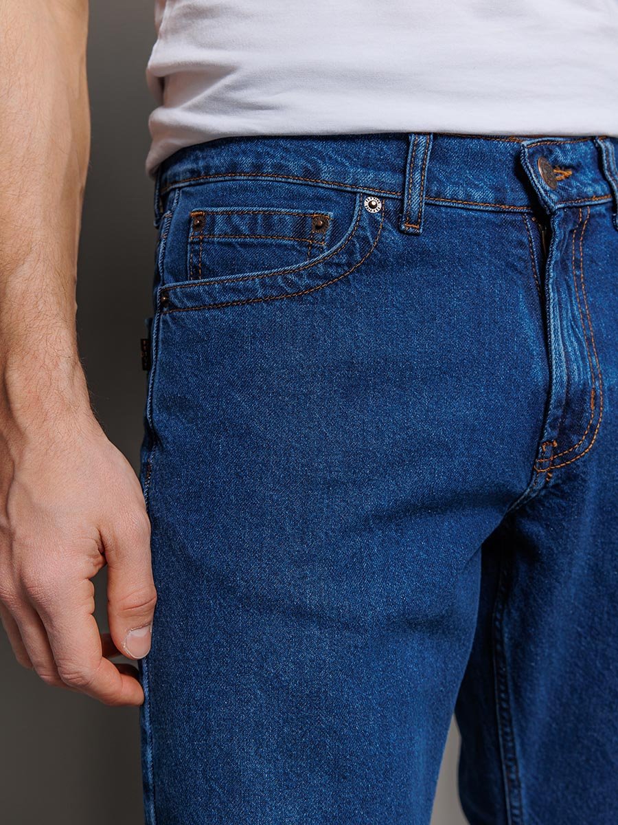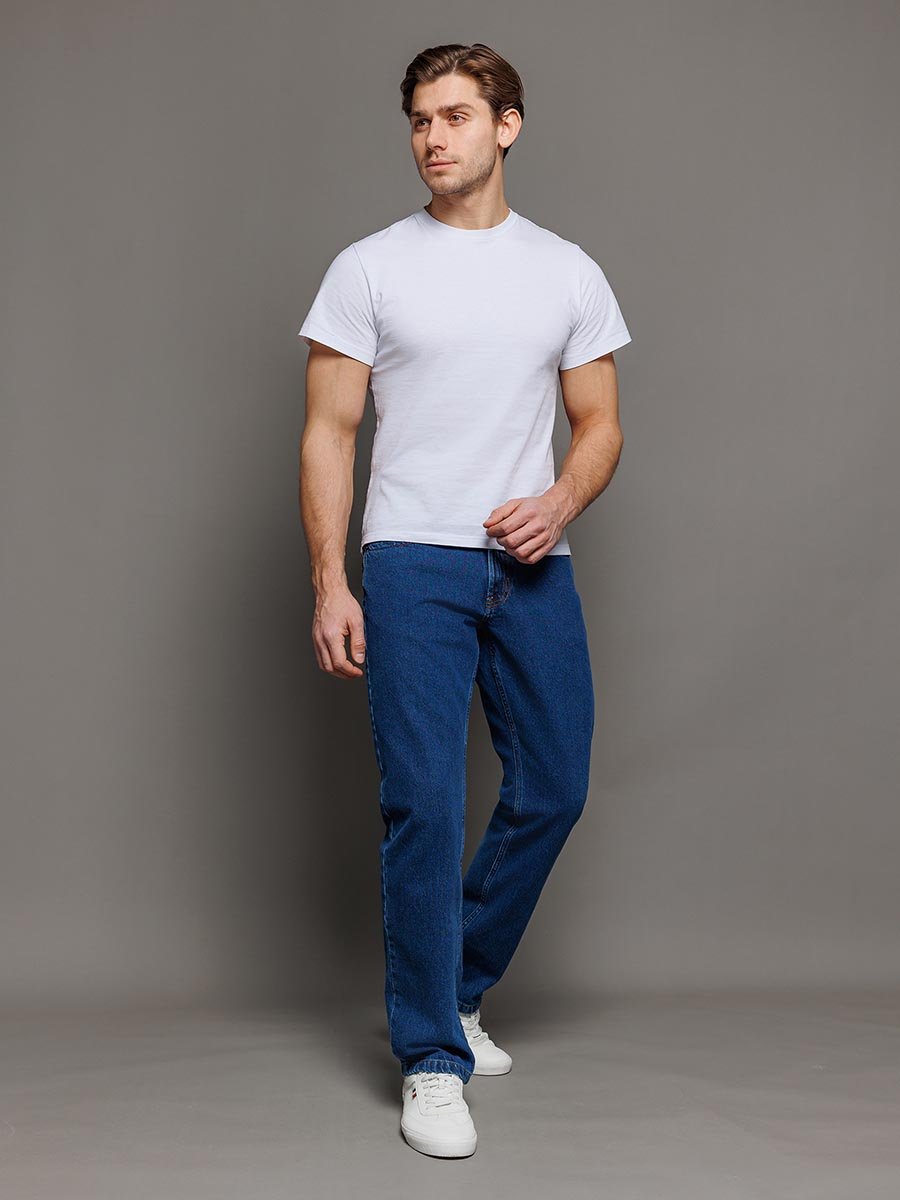 Мужские классические джинсы с пятью карманами. Посадка Regular fit (полуоблегающие по бедру), средняя высота талии. Застежка на молнии. Немного зауженные к низу. Выполнены из ткани denim. Классическая средняя стирка "stone wash". Параметры указаны для размера 32. Длина внутреннего шва для роста 32 - 81,5 см., для роста 34 - 86,5 см.,для роста 36 - 91,5
