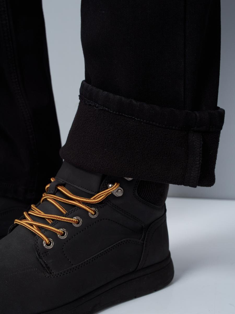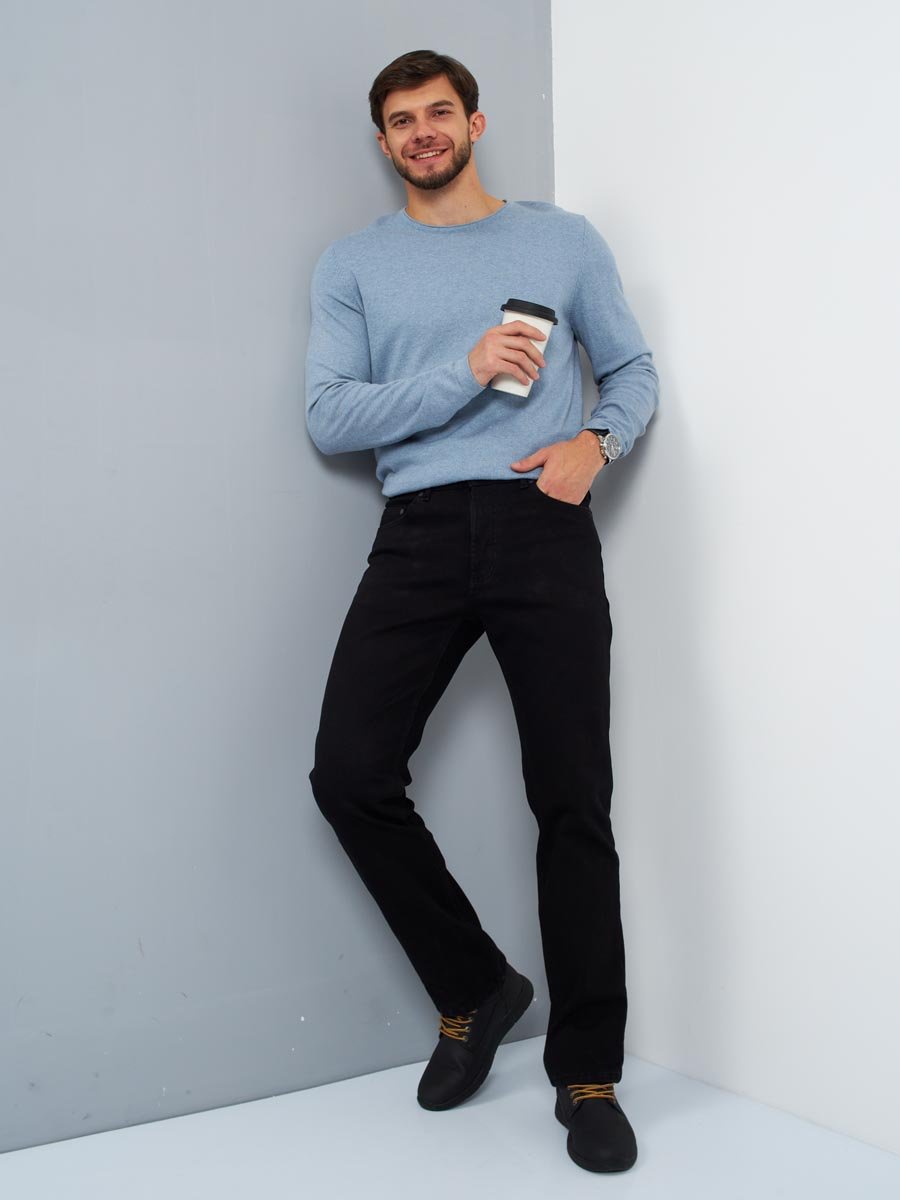 Мужские классические утепленные джинсы с пятью карманами. Посадка Regular fit (полуоблегающие по бедру), немного дополнительно заужены к низу по сравнению с моделью 0965, высокая талия. Застежка на молнии. Выполнены из слабоэластичной утепленной ткани denim comfort stretch, к изнаночной ткани прикреплена дополнительная трикотажная ткань (флис) с мягким, шелковистым и приятным на ощупь ворсом. Темная стирка со слабовыраженными потертостями по швам. Параметры указаны для размера 32. Длина шагового шва для роста 32 - 81 см., для роста 34 - 86 см, для роста 36 - 91 см.