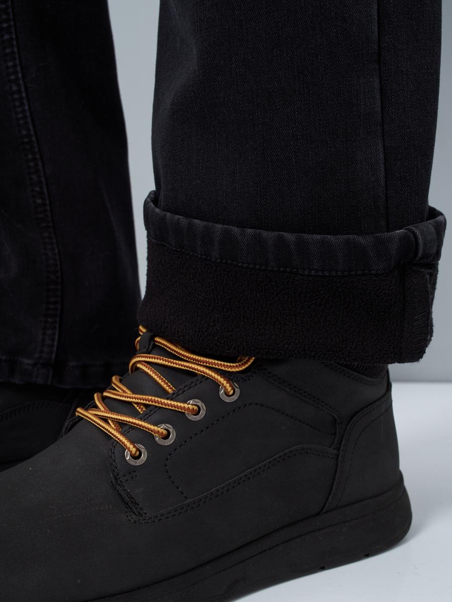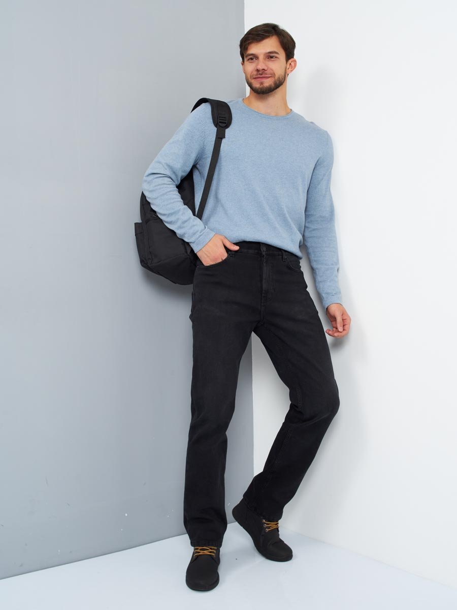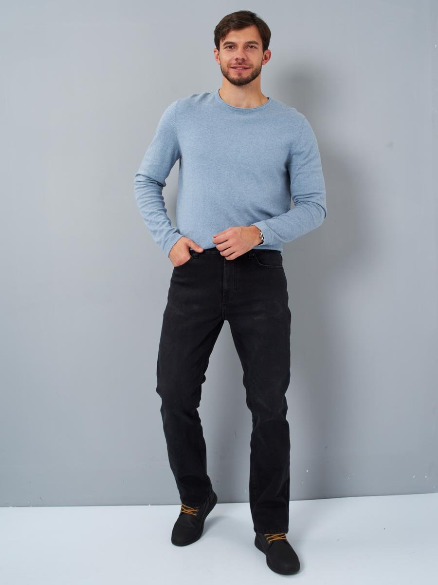 Мужские классические утепленные джинсы с пятью карманами. Посадка Regular fit (полуоблегающие по бедру), немного дополнительно заужены к низу по сравнению с моделью 0965, высокая талия. Застежка на молнии. Выполнены из слабоэластичной утепленной ткани denim comfort stretch, к изнаночной ткани прикреплена дополнительная трикотажная ткань (флис) с мягким, шелковистым и приятным на ощупь ворсом. Темная стирка с потёртостями и слабовыраженными "усами" спереди и потёртостями сзади. Параметры указаны для размера 32. Длина шагового шва для роста 32 - 81 см., для роста 34 - 86 см, для роста 36 - 91 см.
