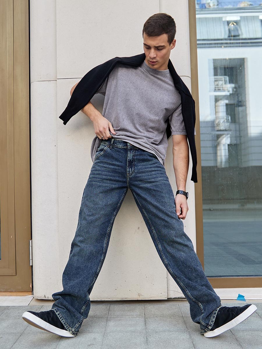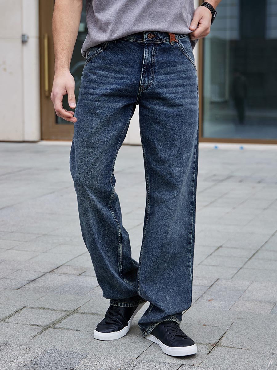 Окунитесь в эпоху легендарных 90-х с нашими винтажными джинсами! Эти мужские джинсы с пятью карманами, высокой посадкой, широким кроем штанин и с застежкой на молнию созданы для тех, кто ценит свободу движений и дизайн в стиле casual. Эта модель предлагает не просто одежду, а чувство уверенности и уникальный ретро образ, который снова на пике моды. Изготовлены из традиционного денима средней плотности. Постираны по технологии каменной стирки (stone wash), поэтому вы ощутите мягкость и комфорт с первой же примерки. Для получения эффекта дополнительной состаренности джинсы постираны по технологии тинтования "GET DIRTY" чтобы получить эффект апачканных джинсов.