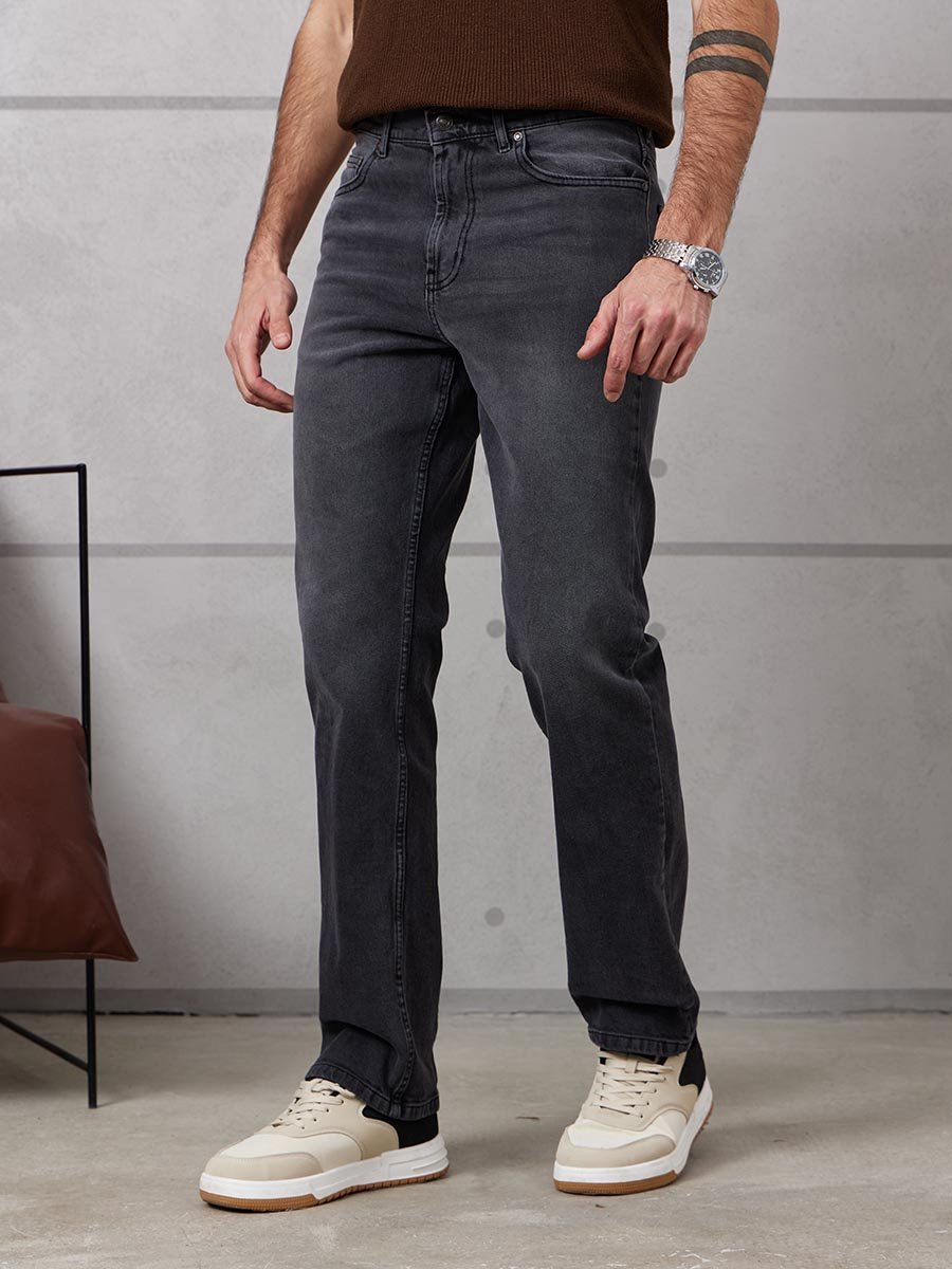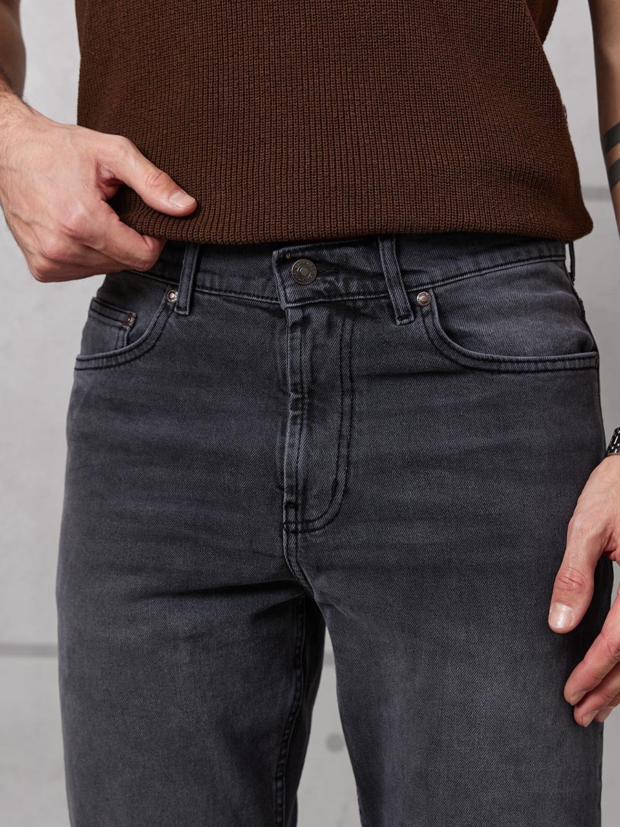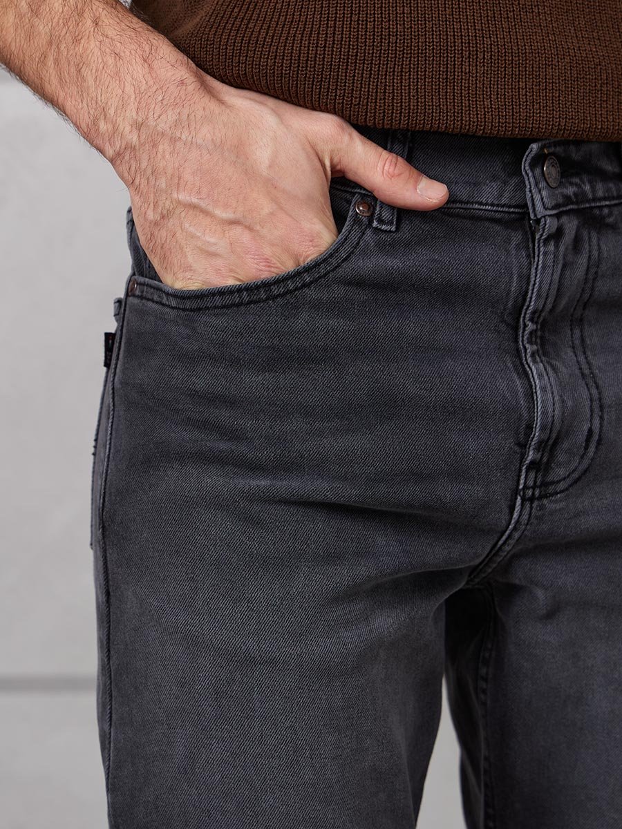 Мужские классические джинсы с пятью карманами. Посадка Regular fit (полуоблегающие по бедру), высокая талия, немного заужены к низу. Застежка на молнии.заужены к низу. Застежка на молнии. Выполнены из слабоэластичной ткани denim comfort stretch, цвет ткани Black/Black (лицевая и изнаночная стороны ткани черные). Классическая темная стирка с потёртостями только по швам. Параметры указаны для размера 32. Длина внутреннего шва - 86,5 см.