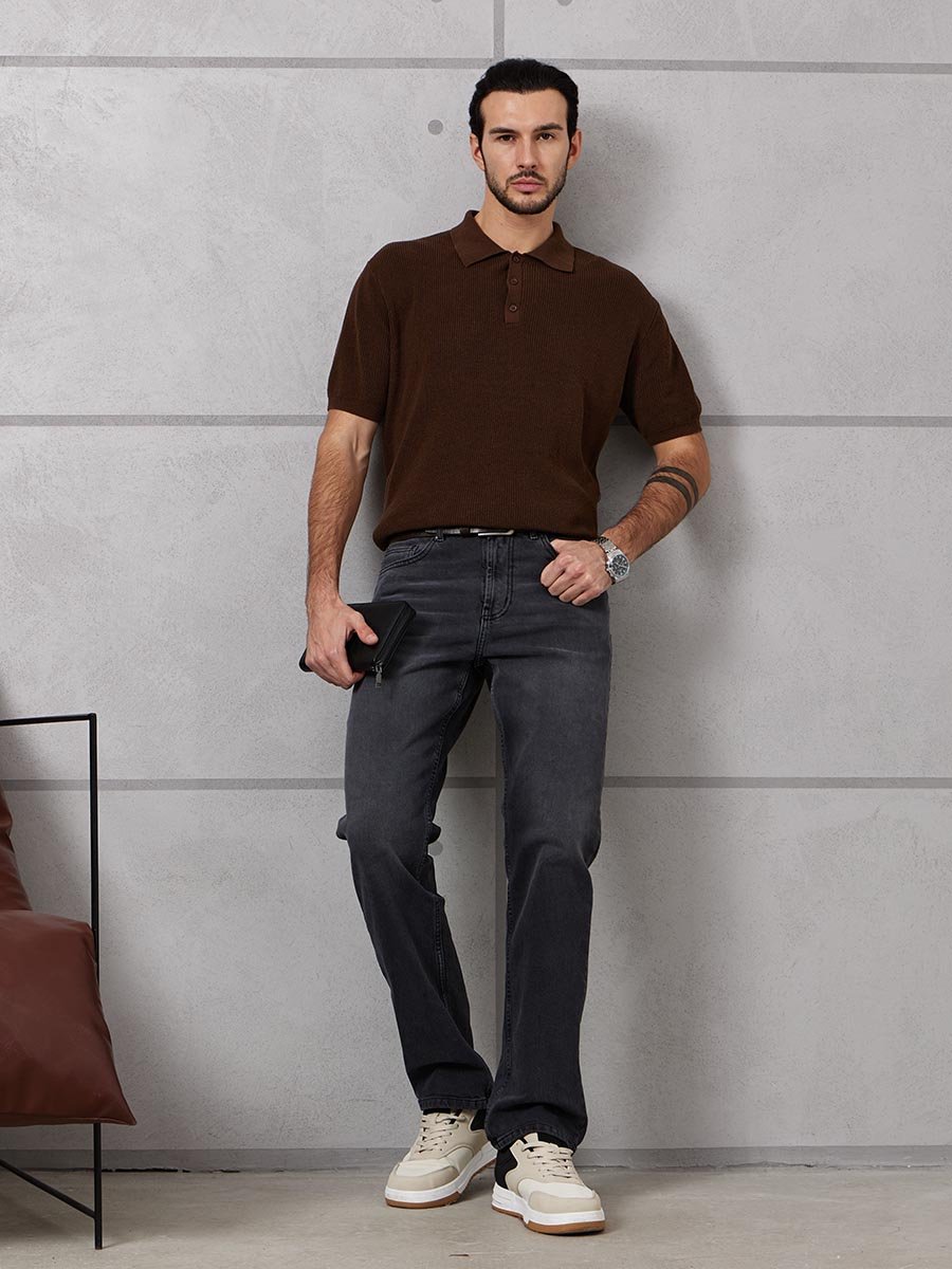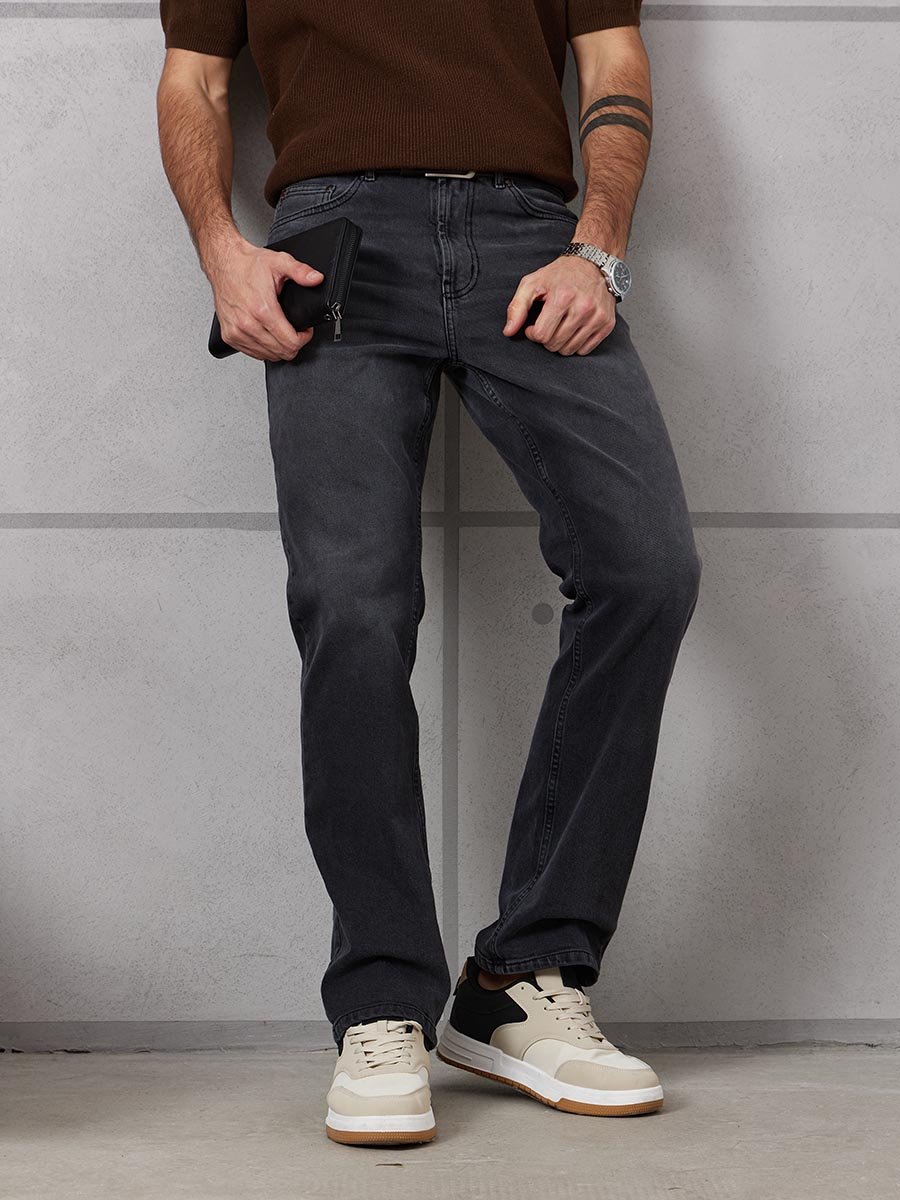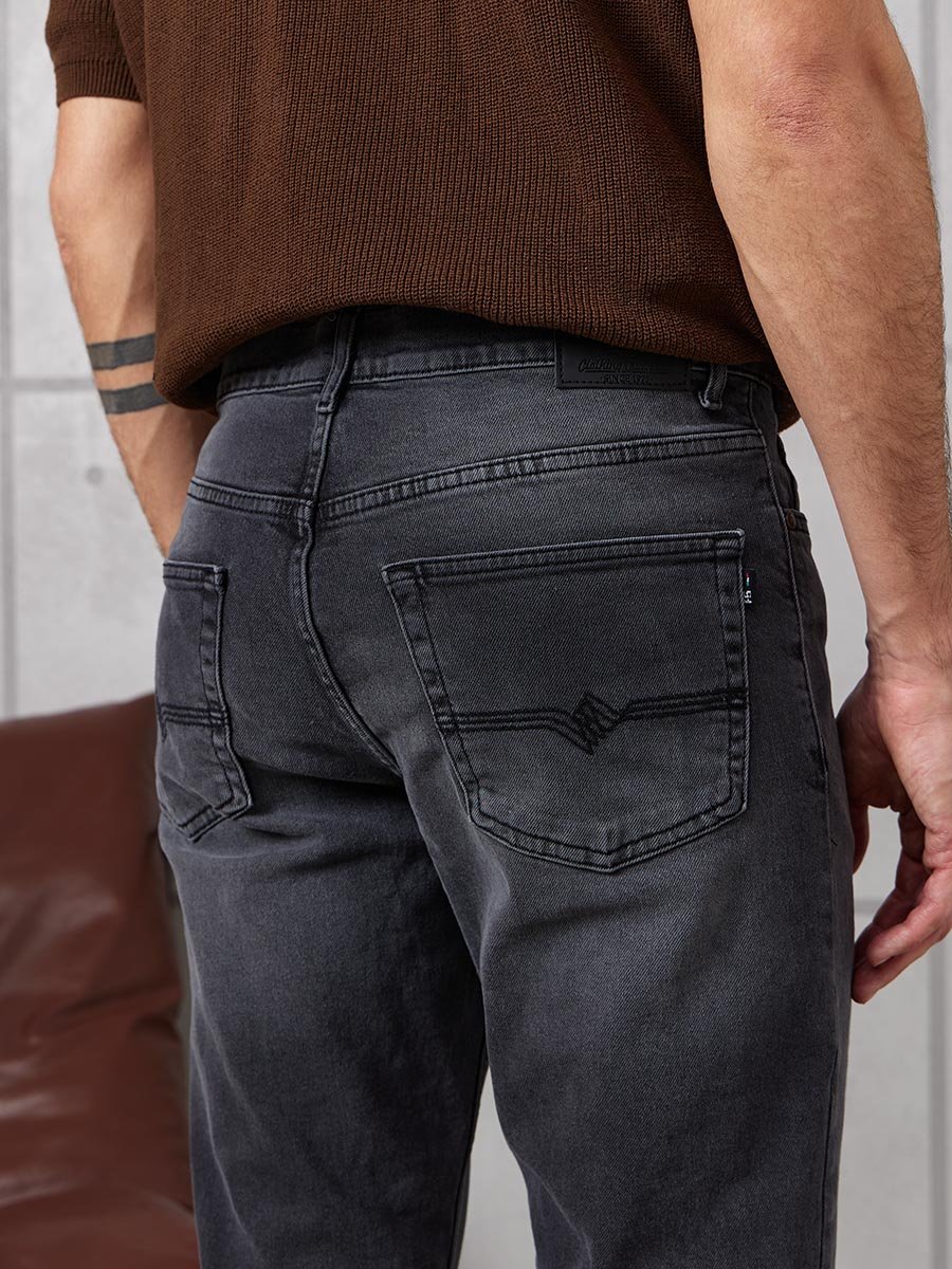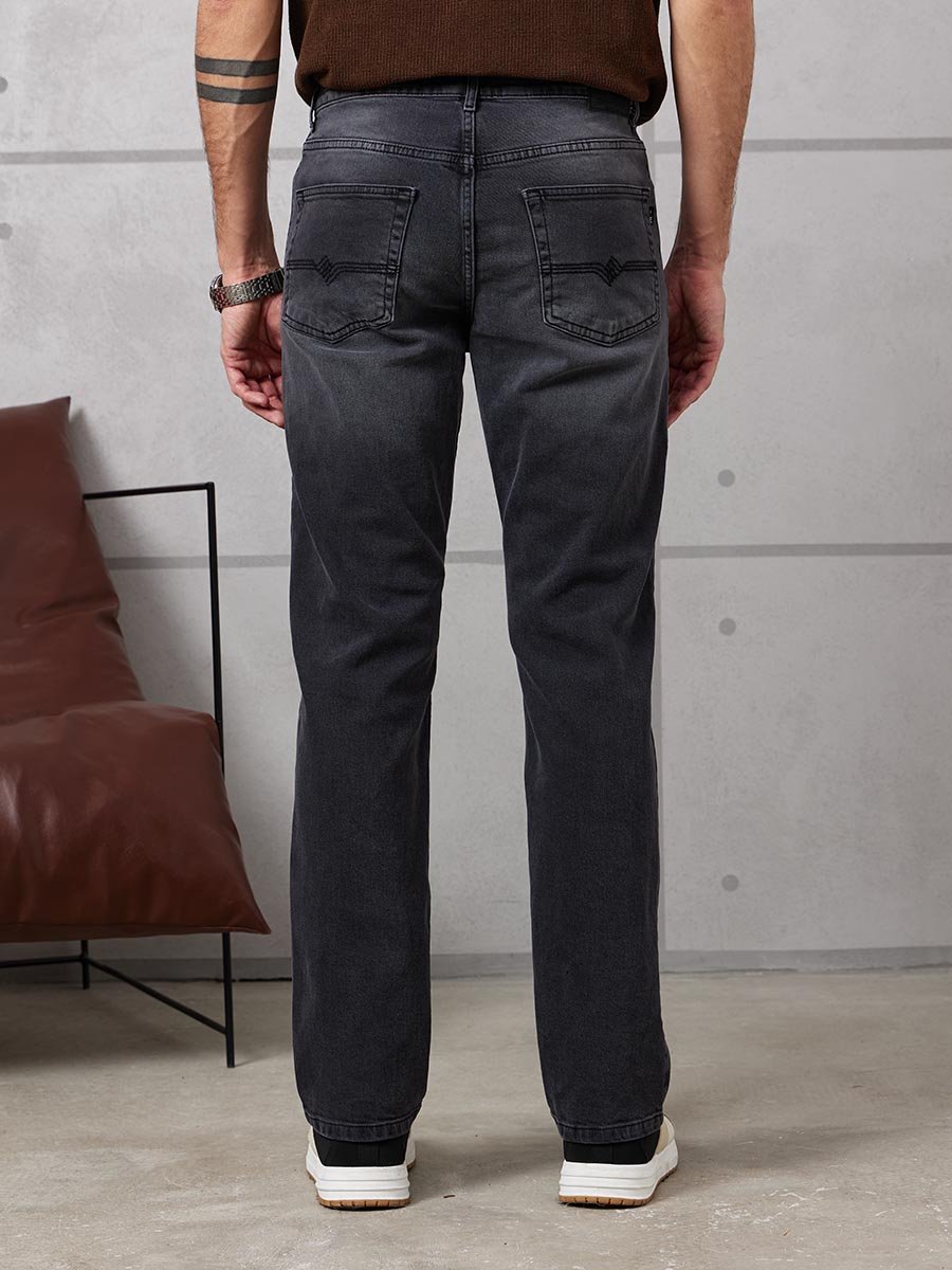 Мужские классические джинсы с пятью карманами. Посадка Regular fit (полуоблегающие по бедру), высокая талия, немного заужены к низу. Застежка на молнии.заужены к низу. Застежка на молнии. Выполнены из слабоэластичной ткани denim comfort stretch, цвет ткани Black/Black (лицевая и изнаночная стороны ткани черные). Классическая темная стирка с потёртостями только по швам. Параметры указаны для размера 32. Длина внутреннего шва - 86,5 см.