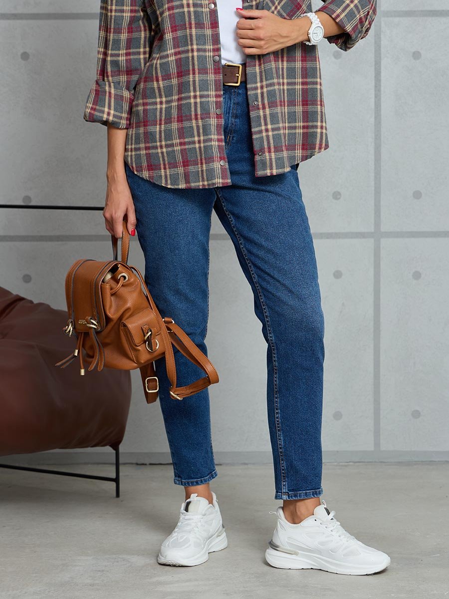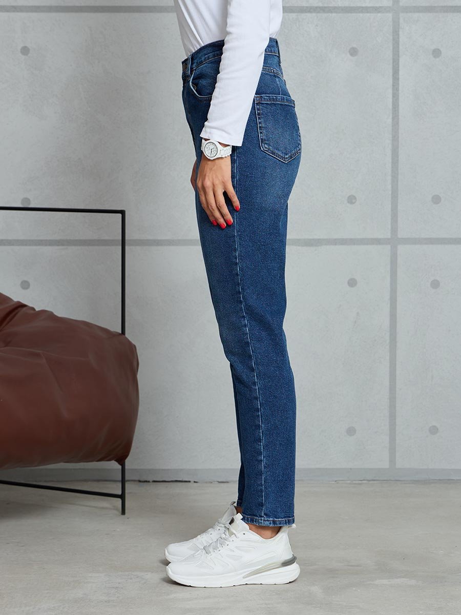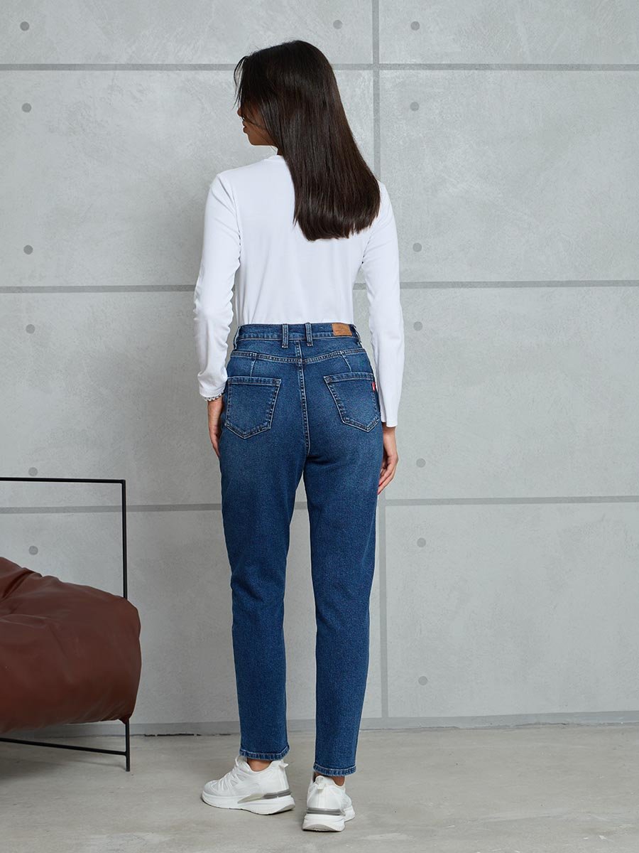 Женские классические ретро джинсы с пятью карманами с использованием лучших традиций 90-х. Посадка Mom fit, высокая талия спереди и сзади, свободные в бедре и зауженные к низу укороченной длины. Застежка на молнии. Выполнены из слабоэластичной ткани denim comfort stretch. Средняя стирка "stone wash" с потертостями спереди и сзади.