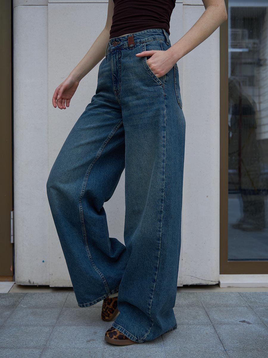 Откройте для себя безграничный комфорт и стиль с нашими джинсами ПАЛАЦЦО (PALAZZO). Эти широкие джинсы с высокой посадкой идеально подходят для создания расслабленного, но элегантного образа. Также идеально подходят как для повседневной носки так и для особых случаев. Изготовленняые из мягкого традиционного денима, они обеспечивают полное сочетание удобства и долговечности. Высокая талия с вытачками сзади для улучшения посадки пояса, карманы "хулиганы", свободные штанины сильно расширяющиеся к низу, позволяют получить утонченный силуэт и подчеркнуть особенности женской фигуры наилучшим образом и в тоже время обеспечить свободу движений. Эти джинсы с уникальным тинтованным эффектом "GET DIRTY", т.е. эффектом запачканных джинсов добавят изюминку в ваш гардероб.