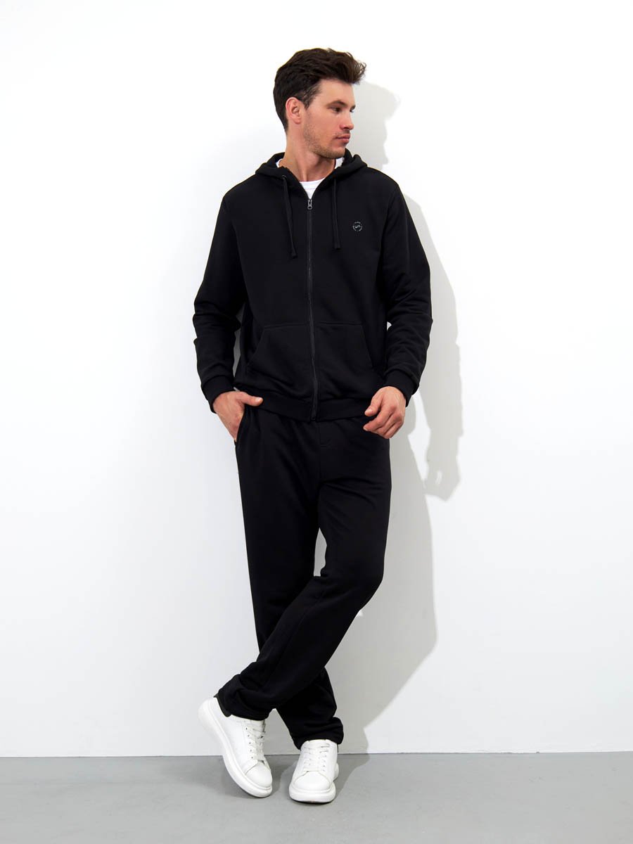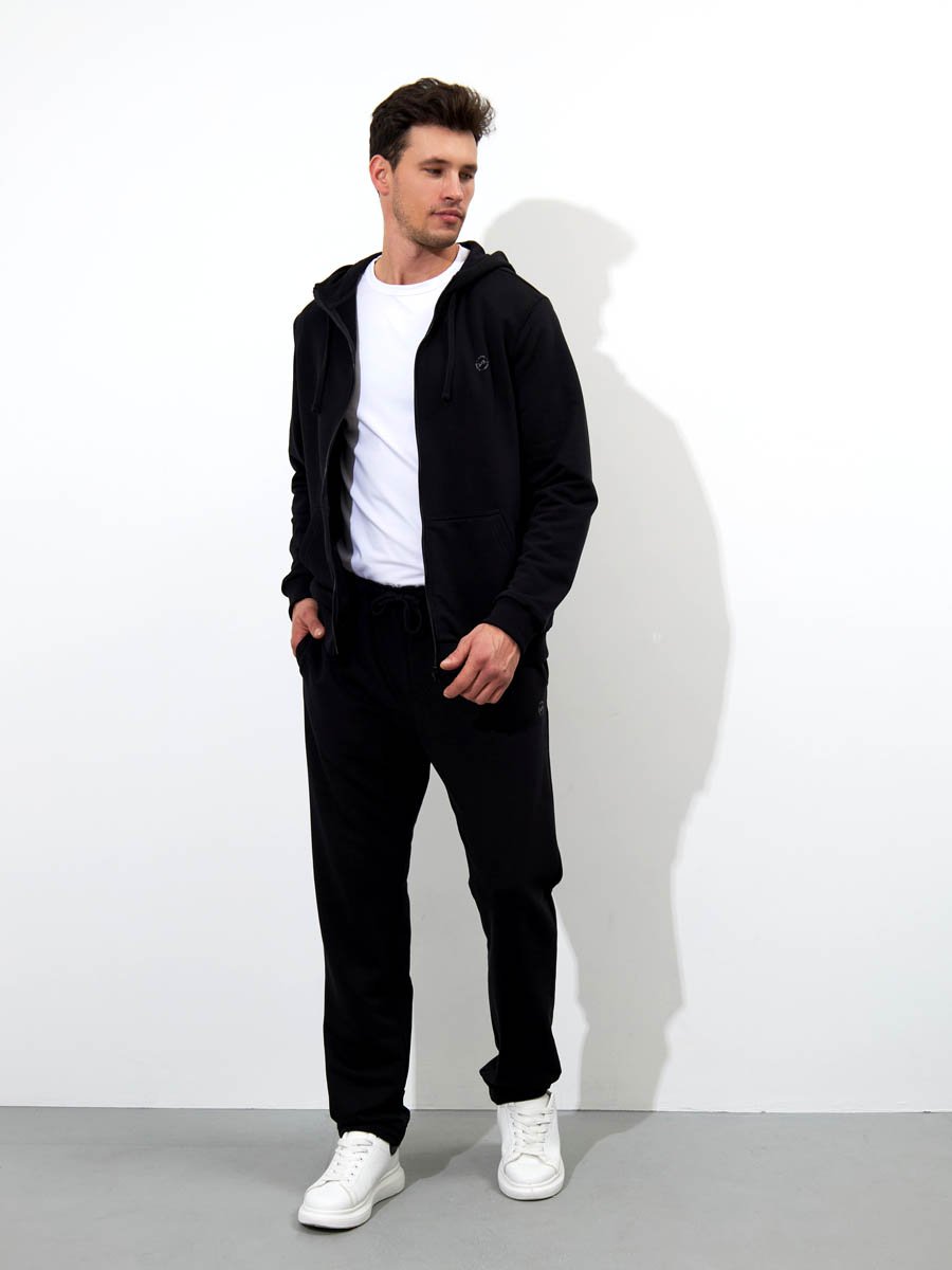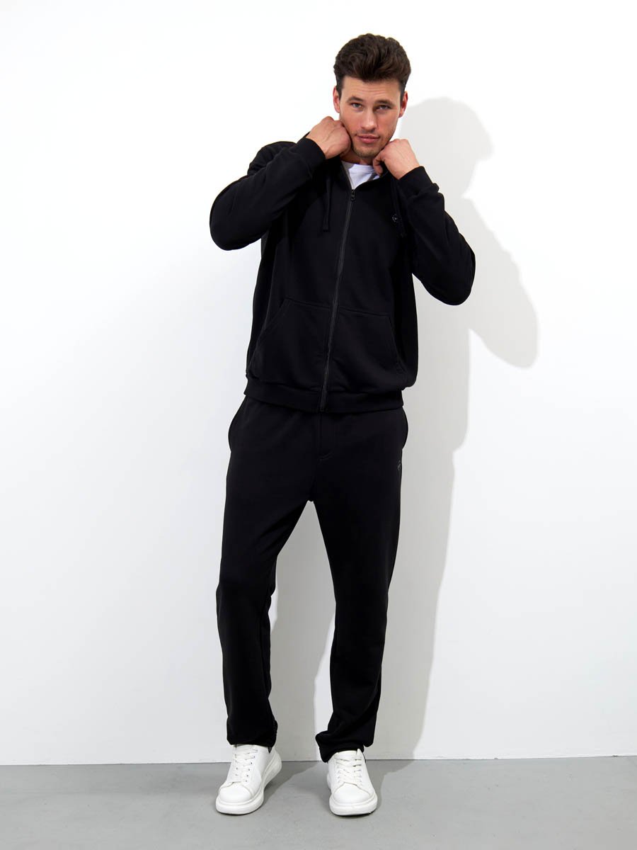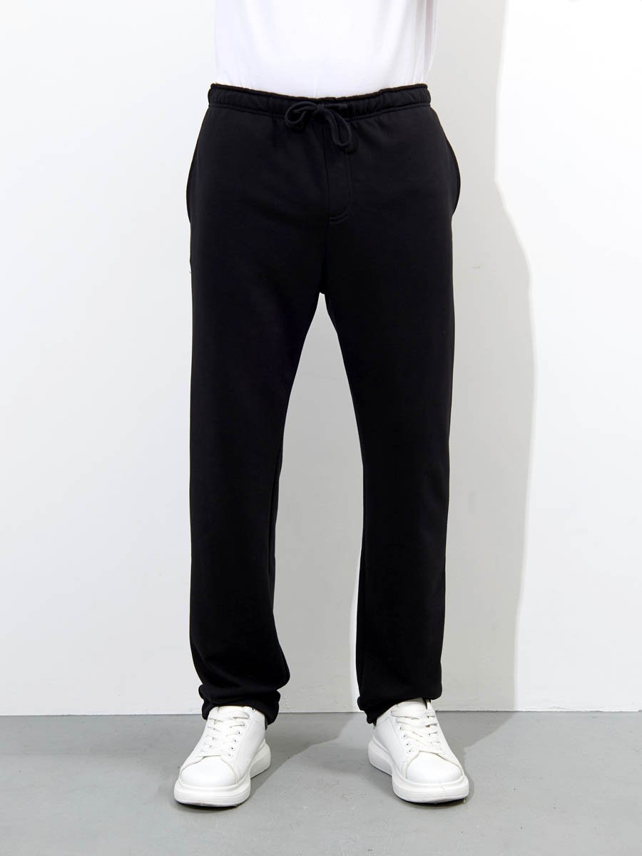 Классические трикотажные мужские брюки из хлопкового полотна с добавлением полиэстера.