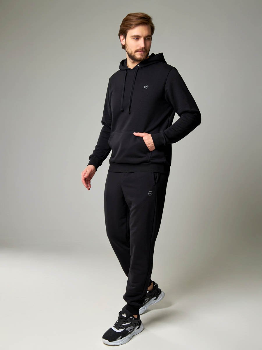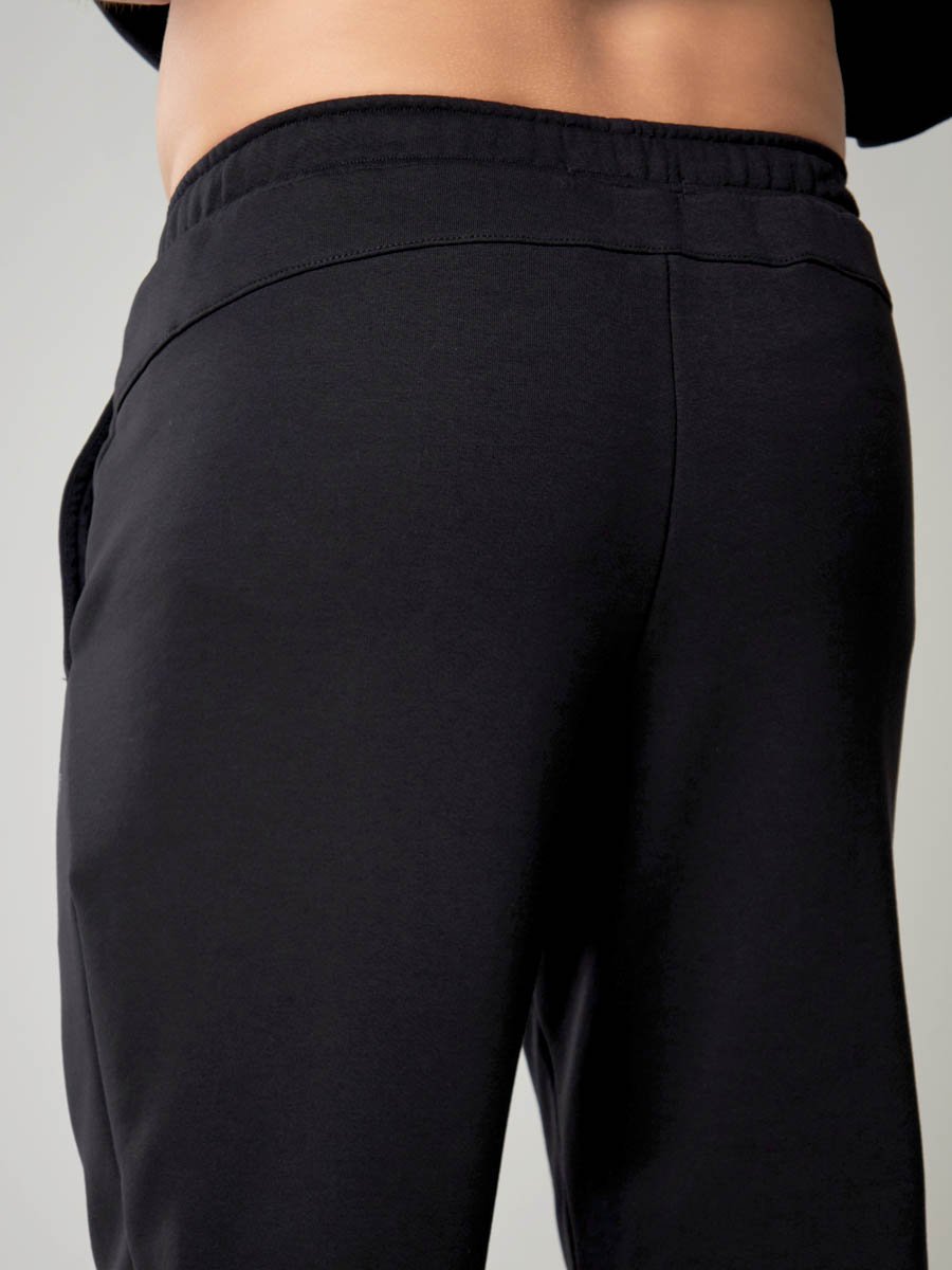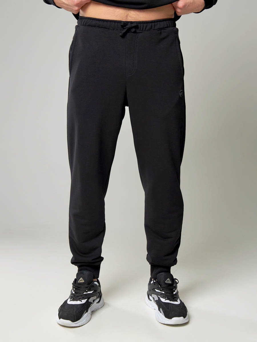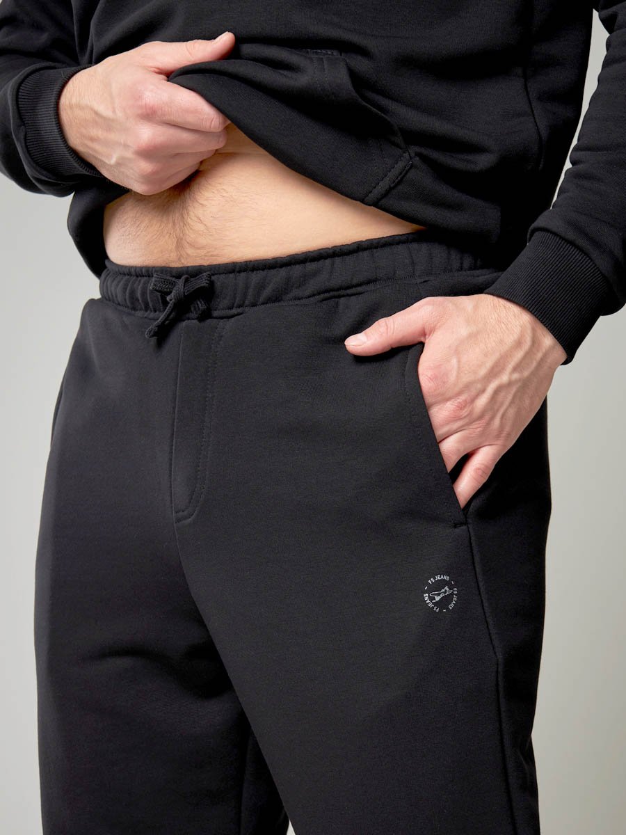 Трикотажные мужские брюки из хлопка с добавлением полиэстера, мягкие и приятные на ощупь, не сковывают движения, обеспечивая максимальный комфорт. На передних половинках вместительные карманы. По низу брюки собраны мягкой трикотажной резинкой. Пояс на резинке. Дополнительно в поясе имеется шнур.