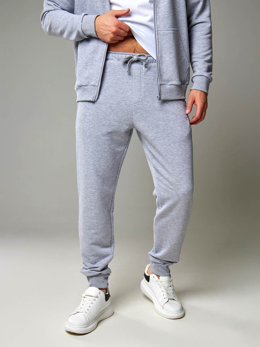 Трикотажные мужские брюки из хлопка с добавлением полиэстера, мягкие и приятные на ощупь, не сковывают движения, обеспечивая максимальный комфорт. На передних половинках вместительные карманы. По низу брюки собраны мягкой трикотажной резинкой. Пояс на резинке. Дополнительно в поясе имеется шнур.