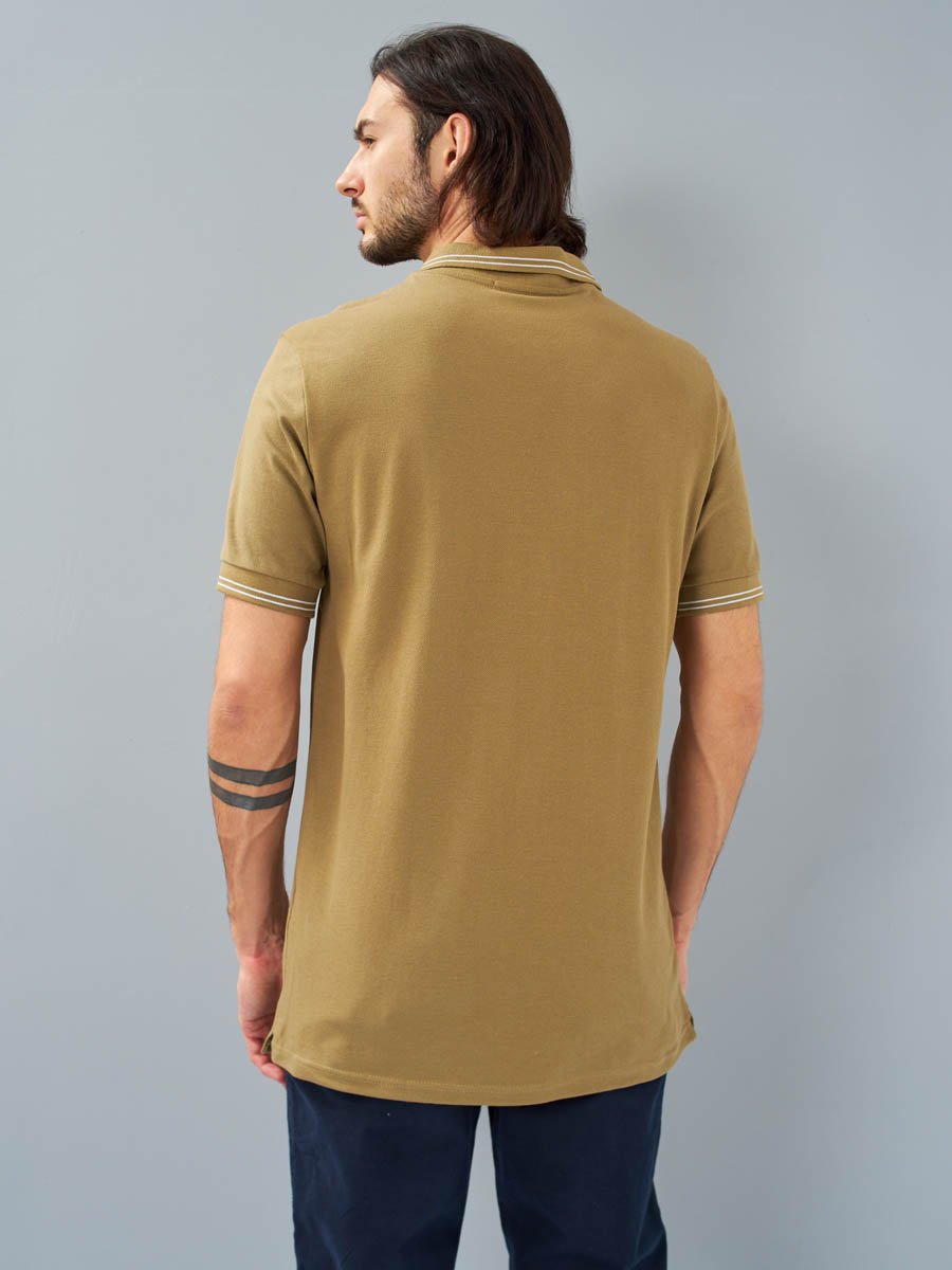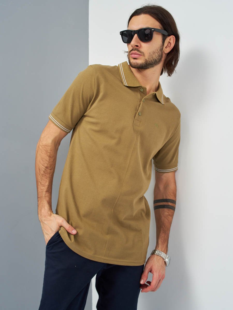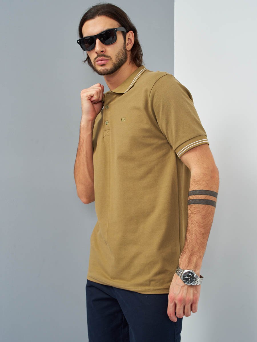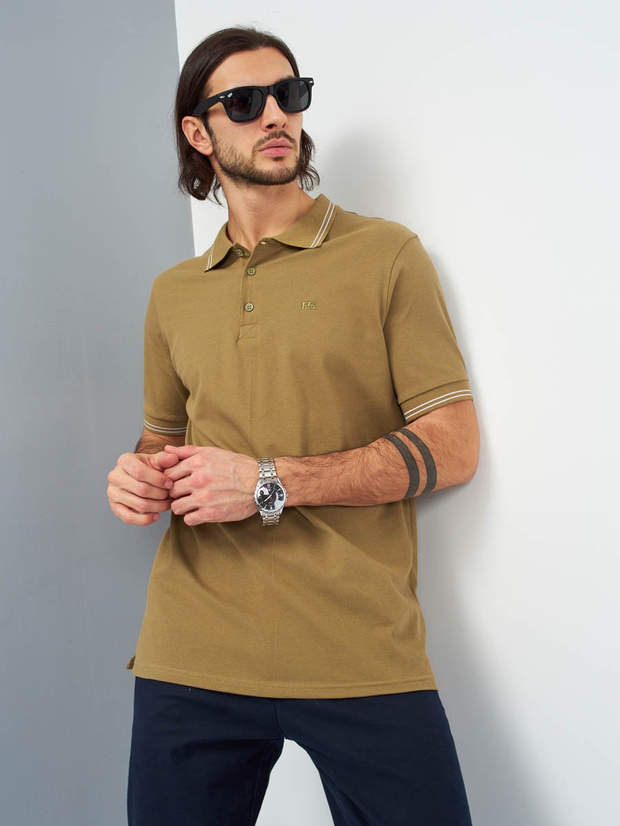 Классическая мужская футболка поло F5, Regular fit (полуприлегающий силуэт), с вышивкой-фирменным логотипом. Выполнена из трикотажного полотна пике (pique). С отложным воротником и короткими рукавами. Застежка-планка обработана пике контрастного цвета, застегивается на 3 пуговицы.