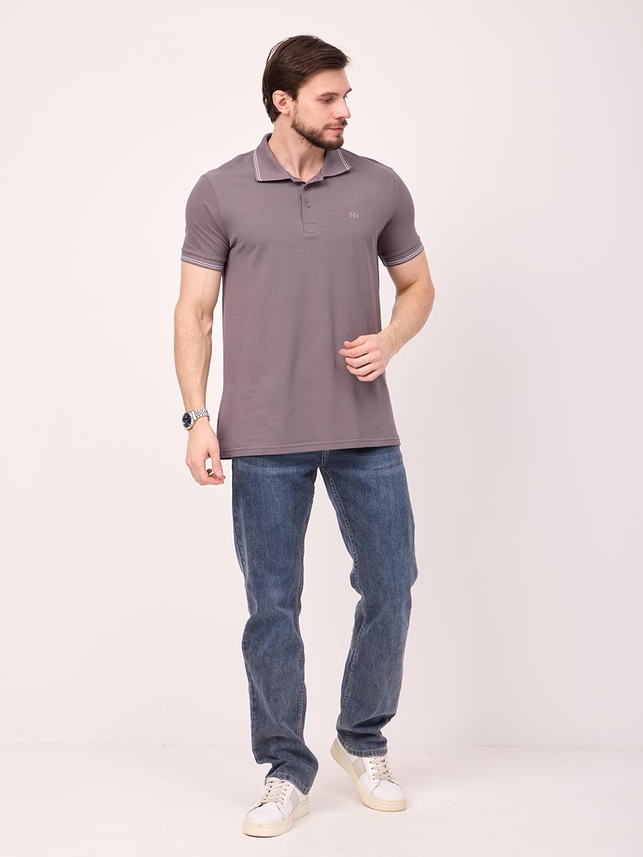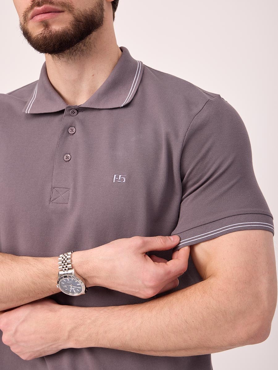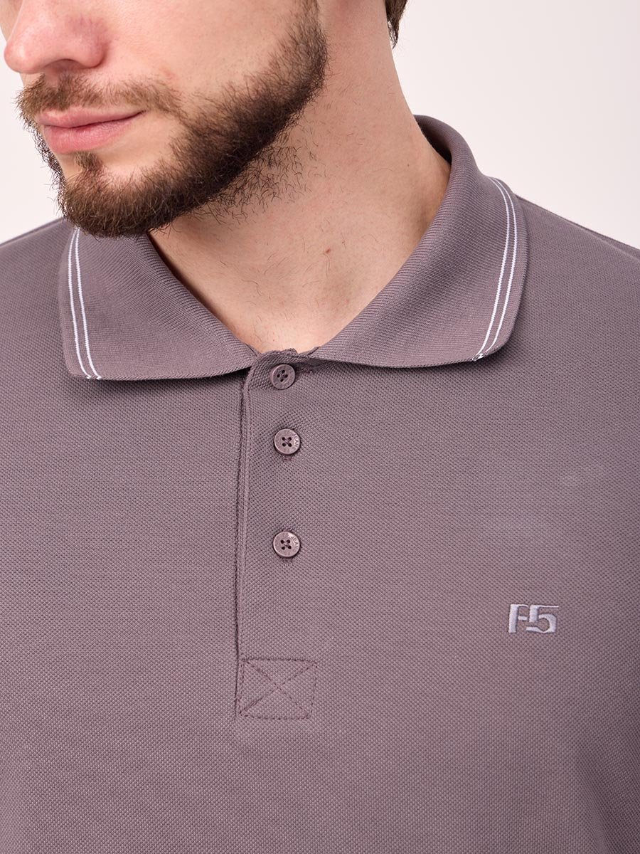 Классическая мужская футболка поло F5, Regular fit (полуприлегающий силуэт), с вышивкой-фирменным логотипом. Выполнена из трикотажного полотна пике (pique). С отложным воротником и короткими рукавами. Застежка-планка обработана пике контрастного цвета, застегивается на 3 пуговицы.