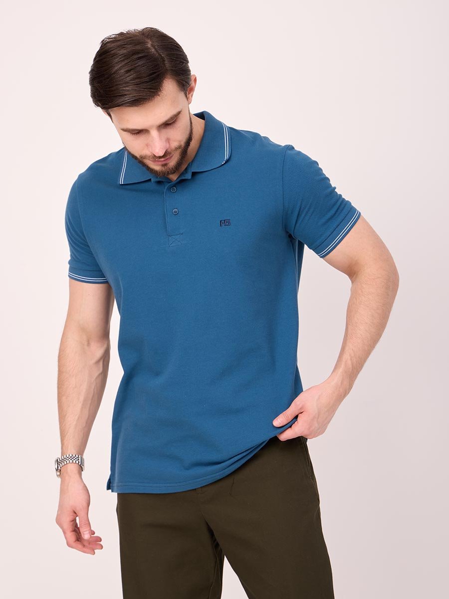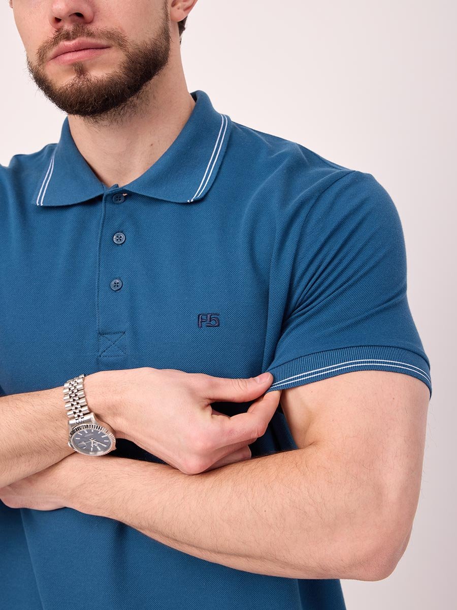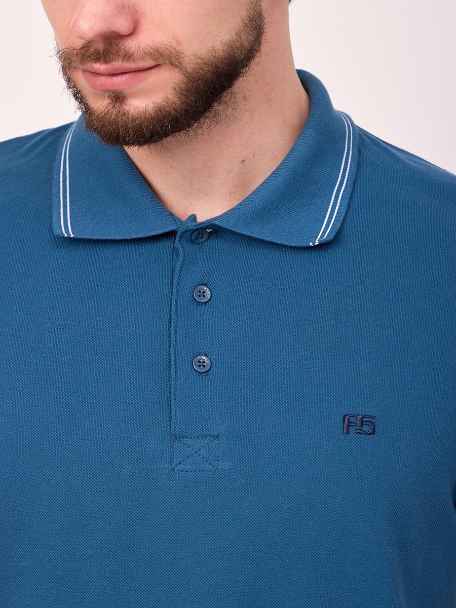 Классическая мужская футболка поло F5, Regular fit (полуприлегающий силуэт), с вышивкой-фирменным логотипом. Выполнена из трикотажного полотна пике (pique). С отложным воротником и короткими рукавами. Застежка-планка застегивается на 3 пуговицы.