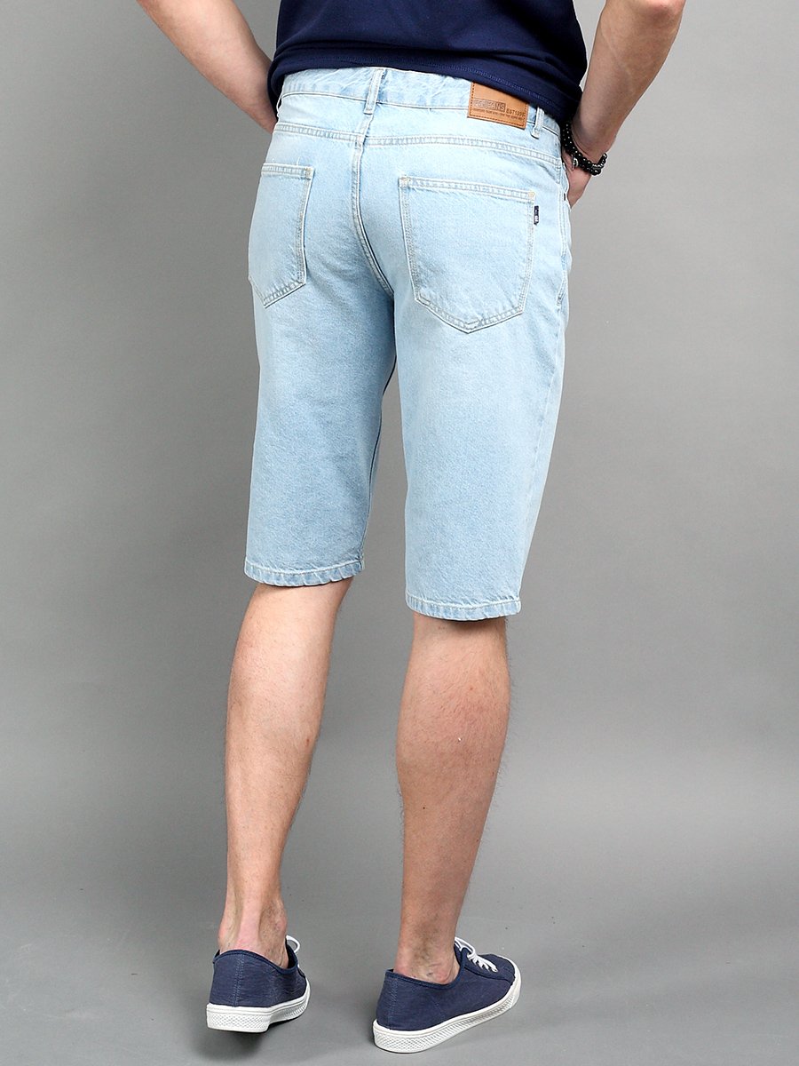 Мужские классические джинсовые шорты с пятью карманами. Посадка Regular fit (полуоблегающие по бедру), Средняя талия спереди и высокая сзади, немного зауженные к низу.Застежка на молнии. Выполнены из традиционной хлопковой ткани denim. Средняя стирка с потёртостями и слабовыраженными "усами" спереди и потёртостями сзади. Параметры указаны для размера 32.