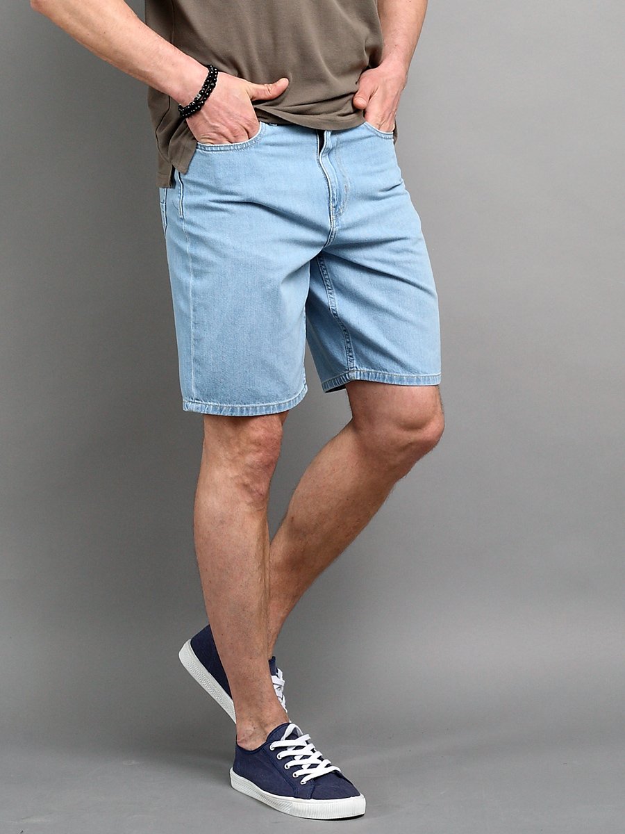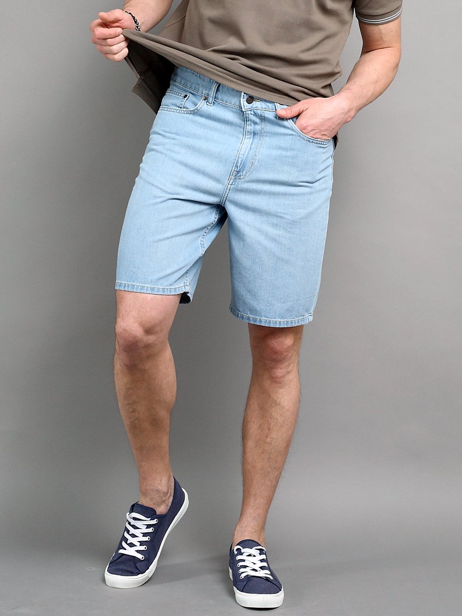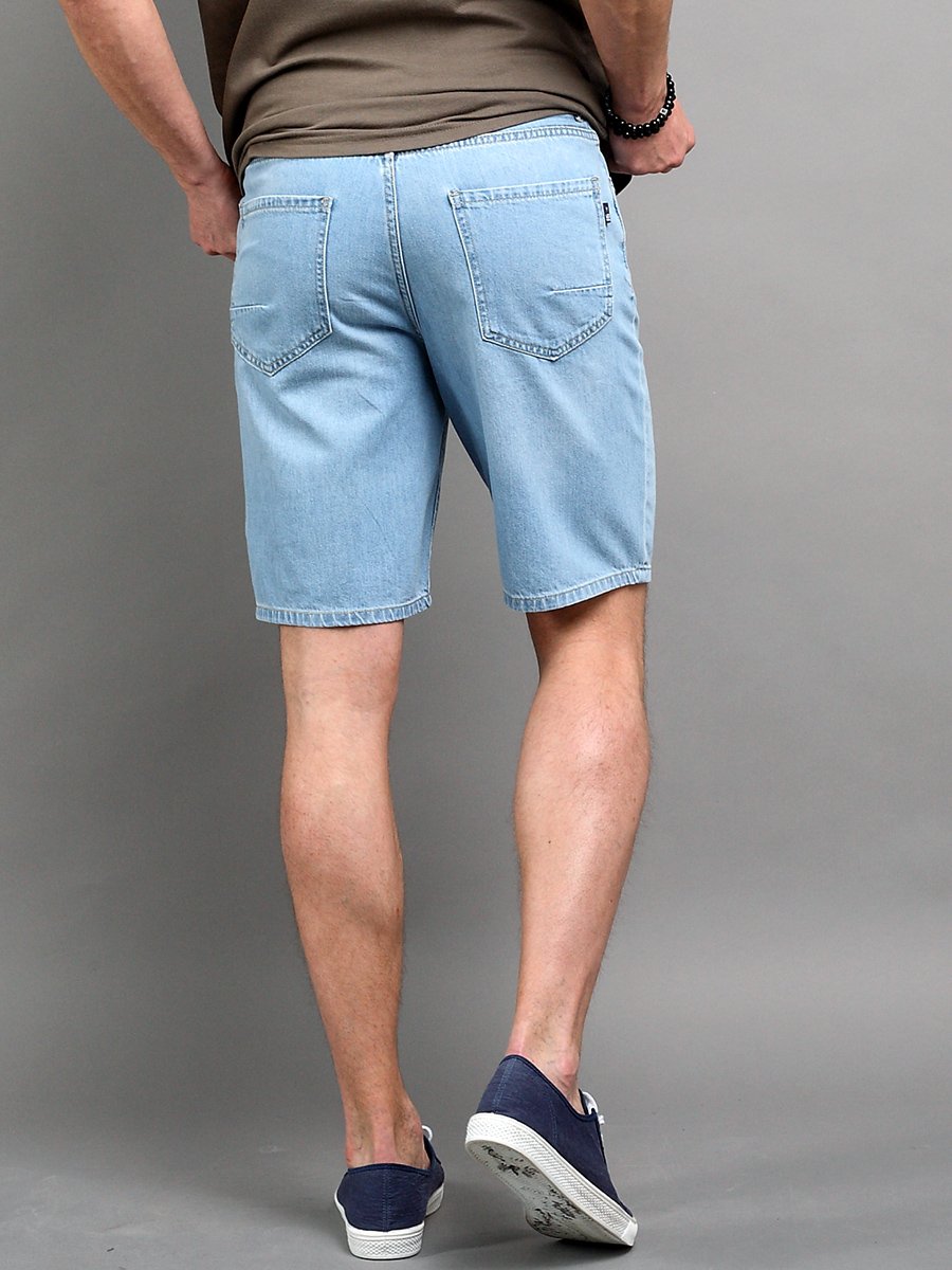 Мужские модные джинсовые шорты с пятью карманами. Посадка Regular fit (полуоблегающие по бедру), Высокая талия спереди и сзади.Застежка на молнии. Выполнены из облегченной хлопковой ткани denim. Светлая стирка "stone wash"с отбеливателем.. Параметры указаны для размера 32.