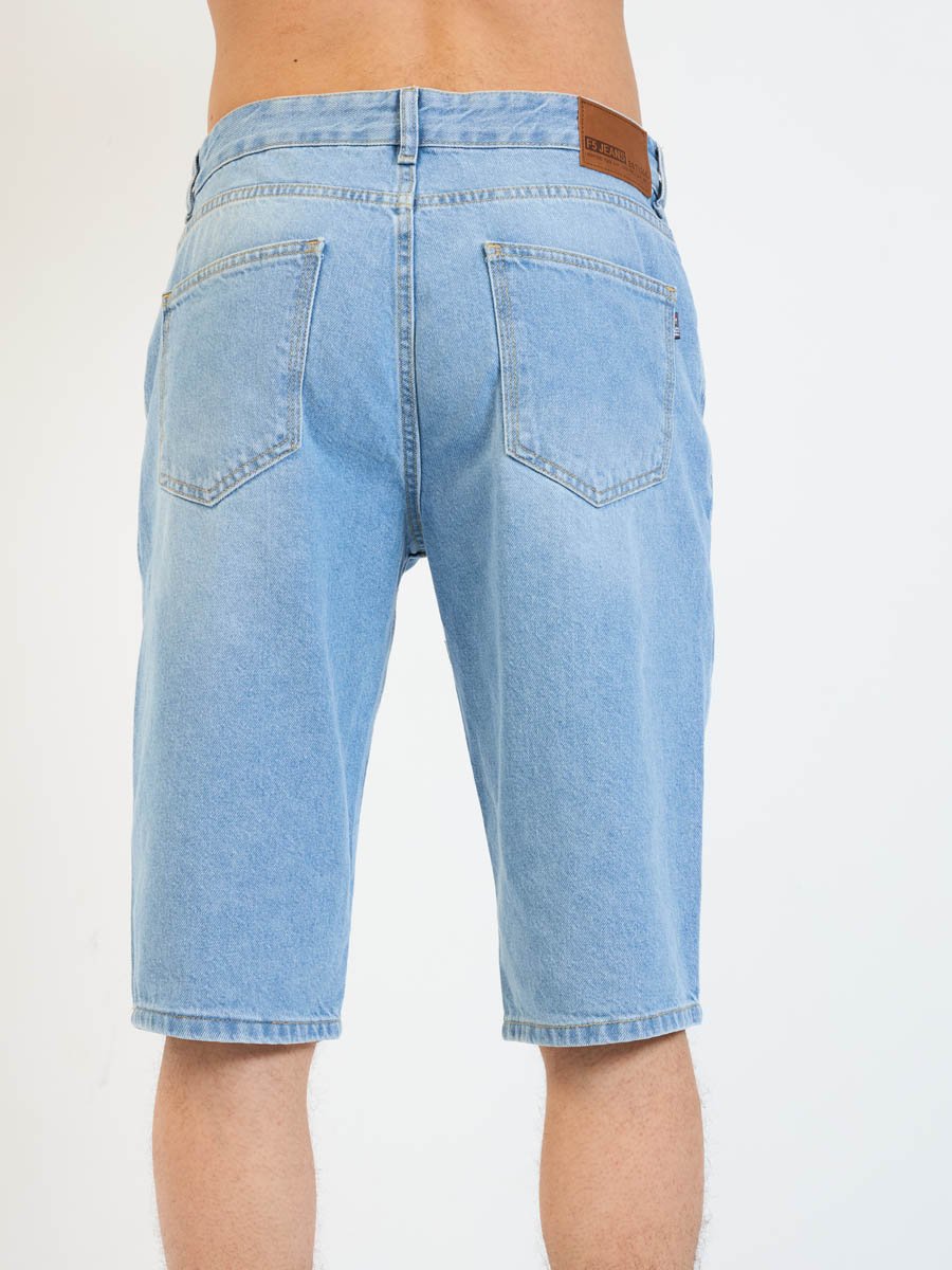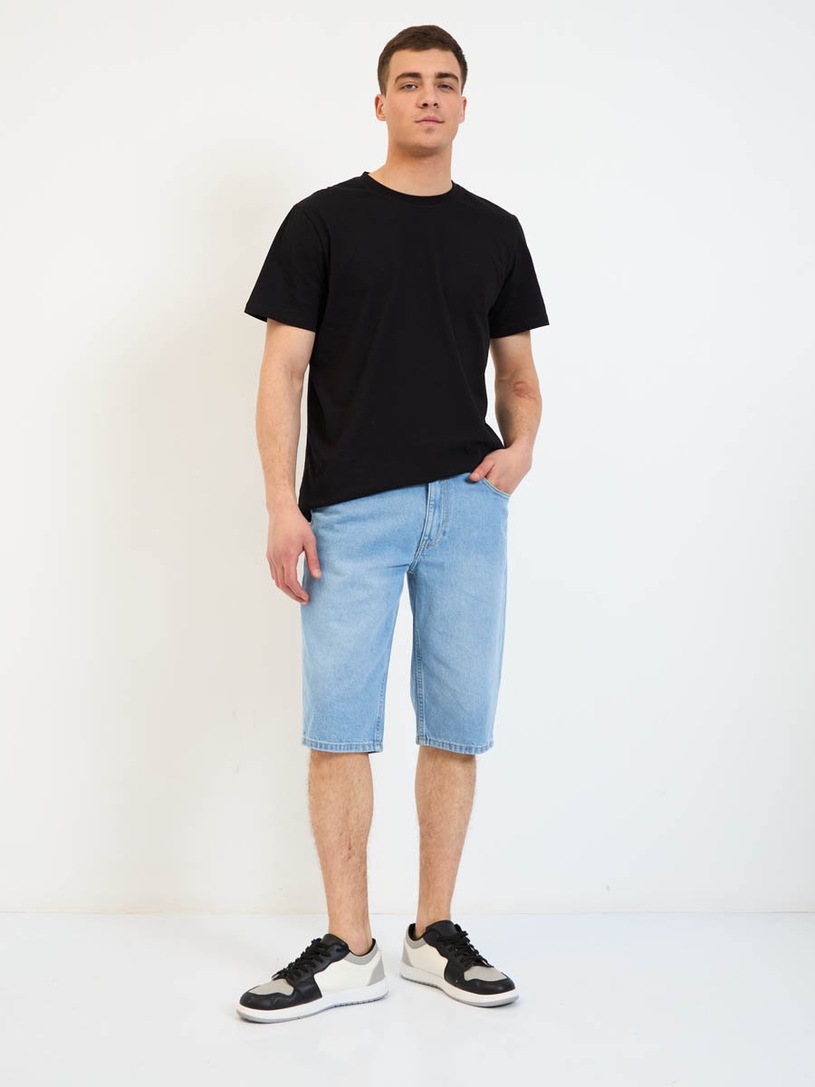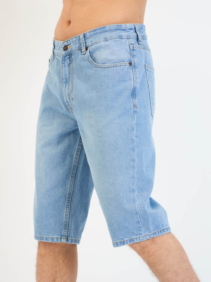 Мужские классические джинсовые шорты с пятью карманами. Посадка Regular fit (полуоблегающие по бедру), Средняя талия спереди и высокая сзади, немного зауженные к низу.Застежка на молнии. Выполнены из традиционной хлопковой ткани denim. Светлая стирка со слабовыраженными потёртостями спереди и сзади.