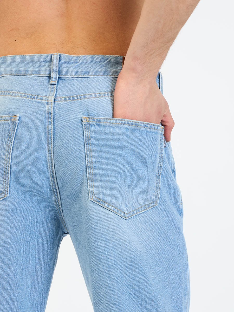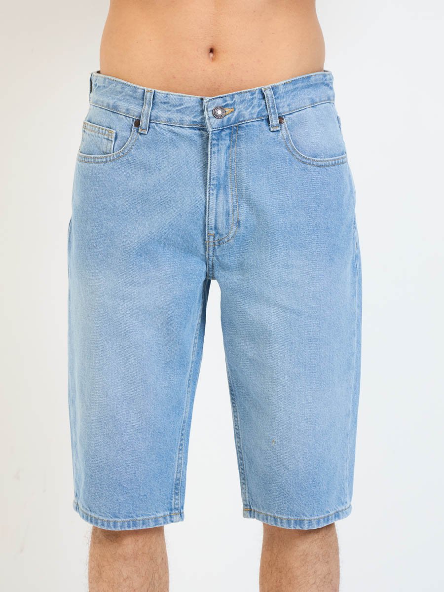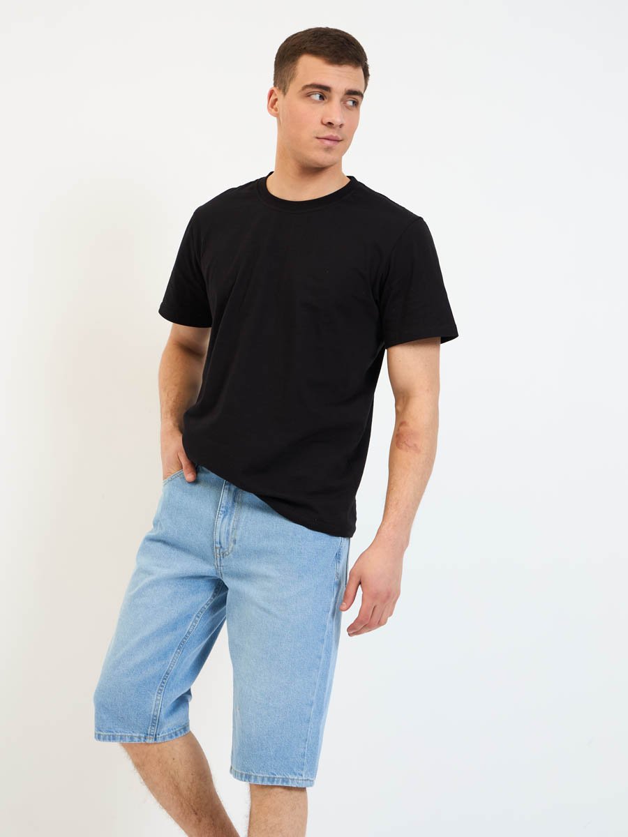 Мужские классические джинсовые шорты с пятью карманами. Посадка Regular fit (полуоблегающие по бедру), Средняя талия спереди и высокая сзади, немного зауженные к низу.Застежка на молнии. Выполнены из традиционной хлопковой ткани denim. Светлая стирка со слабовыраженными потёртостями спереди и сзади.