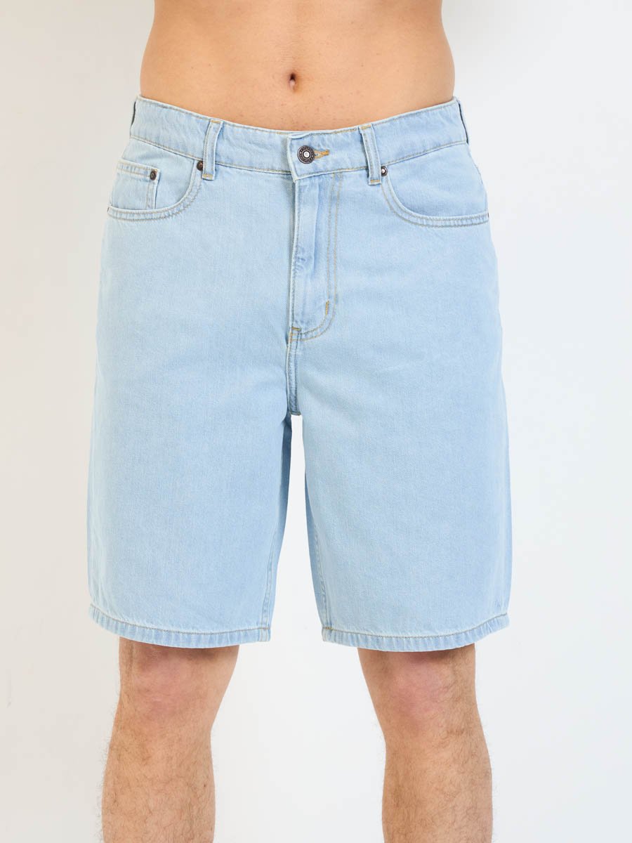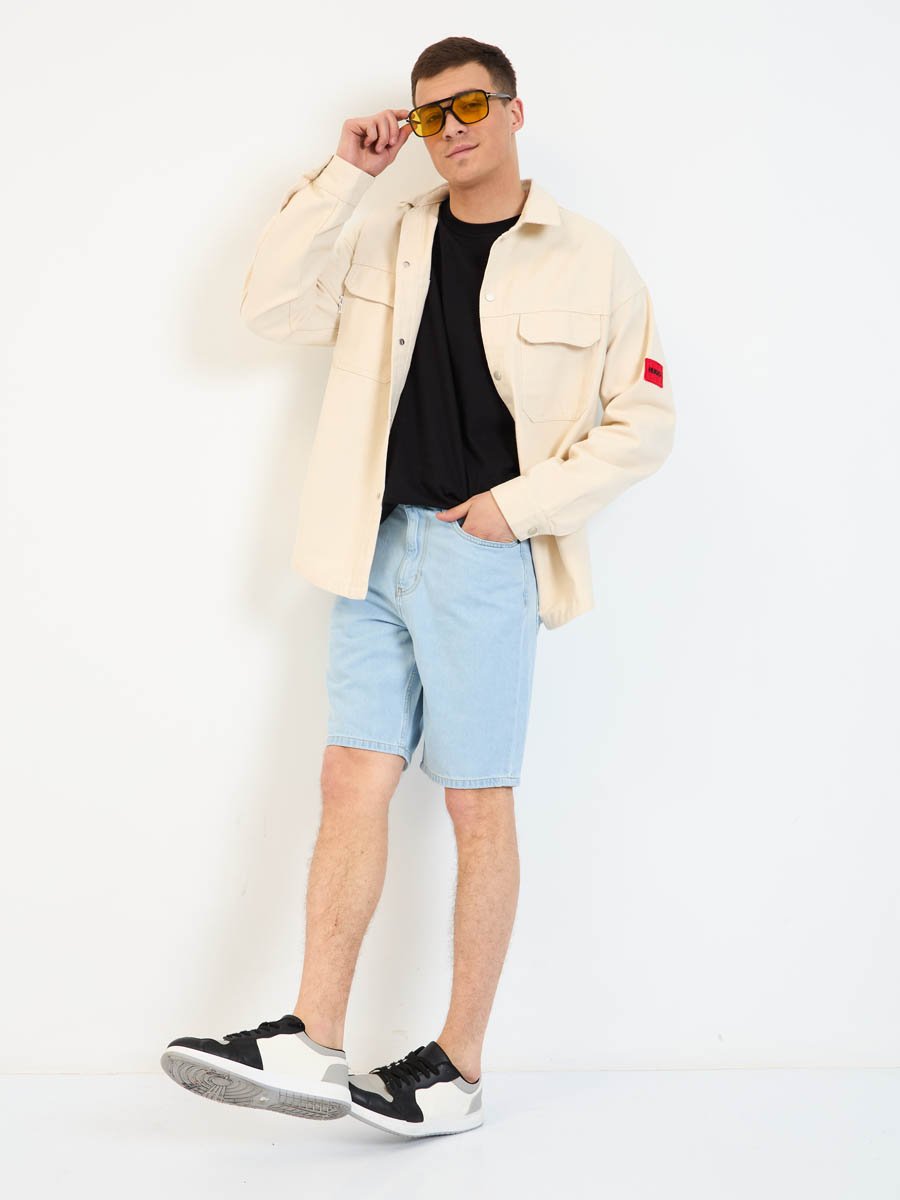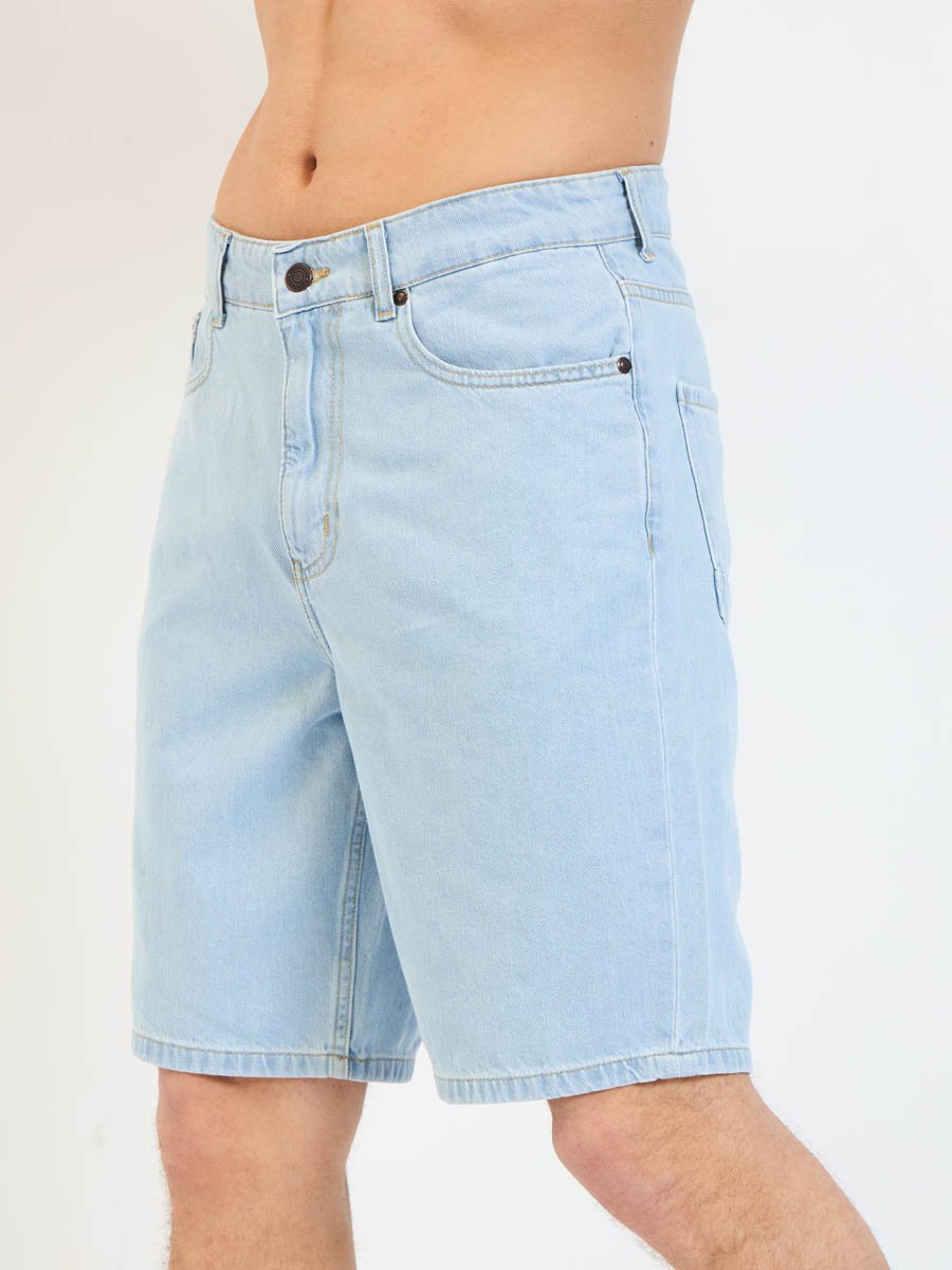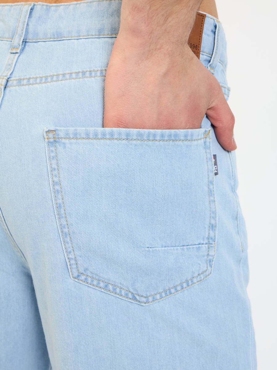 Мужские модные джинсовые шорты с пятью карманами. Посадка Regular fit (полуоблегающие по бедру), Высокая талия спереди и сзади.Застежка на молнии. Выполнены из облегченной хлопковой ткани denim. Светлая стирка "stone wash"с осветлением.