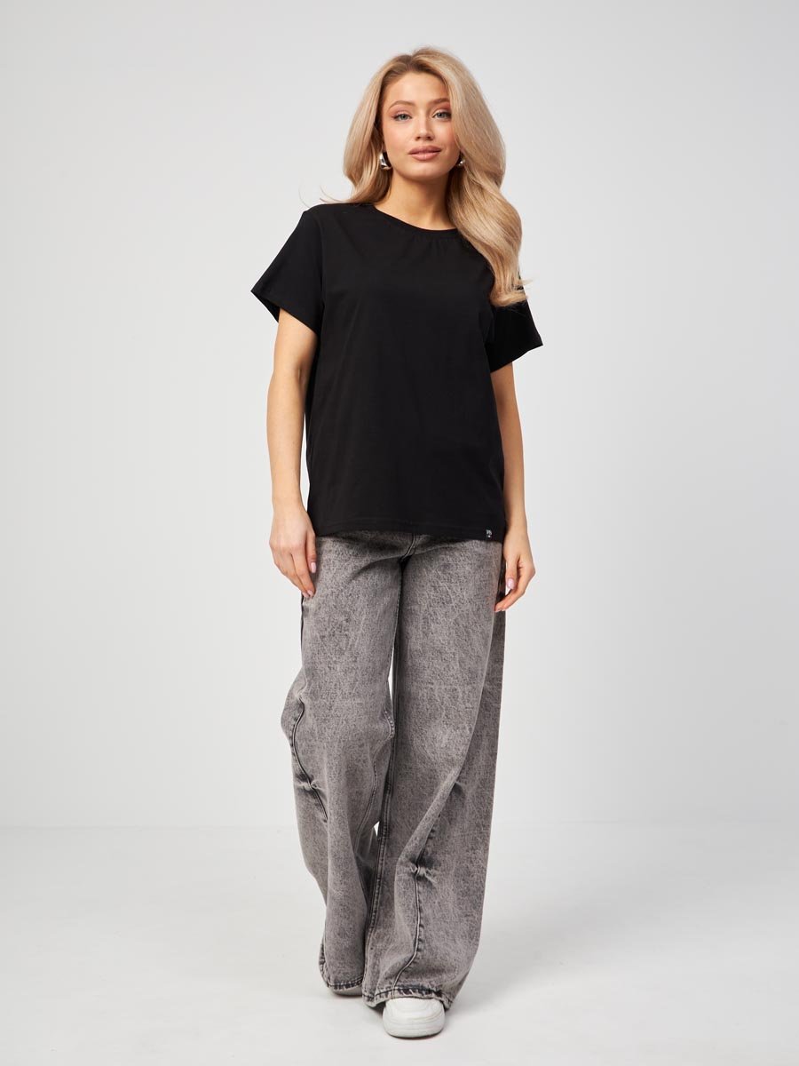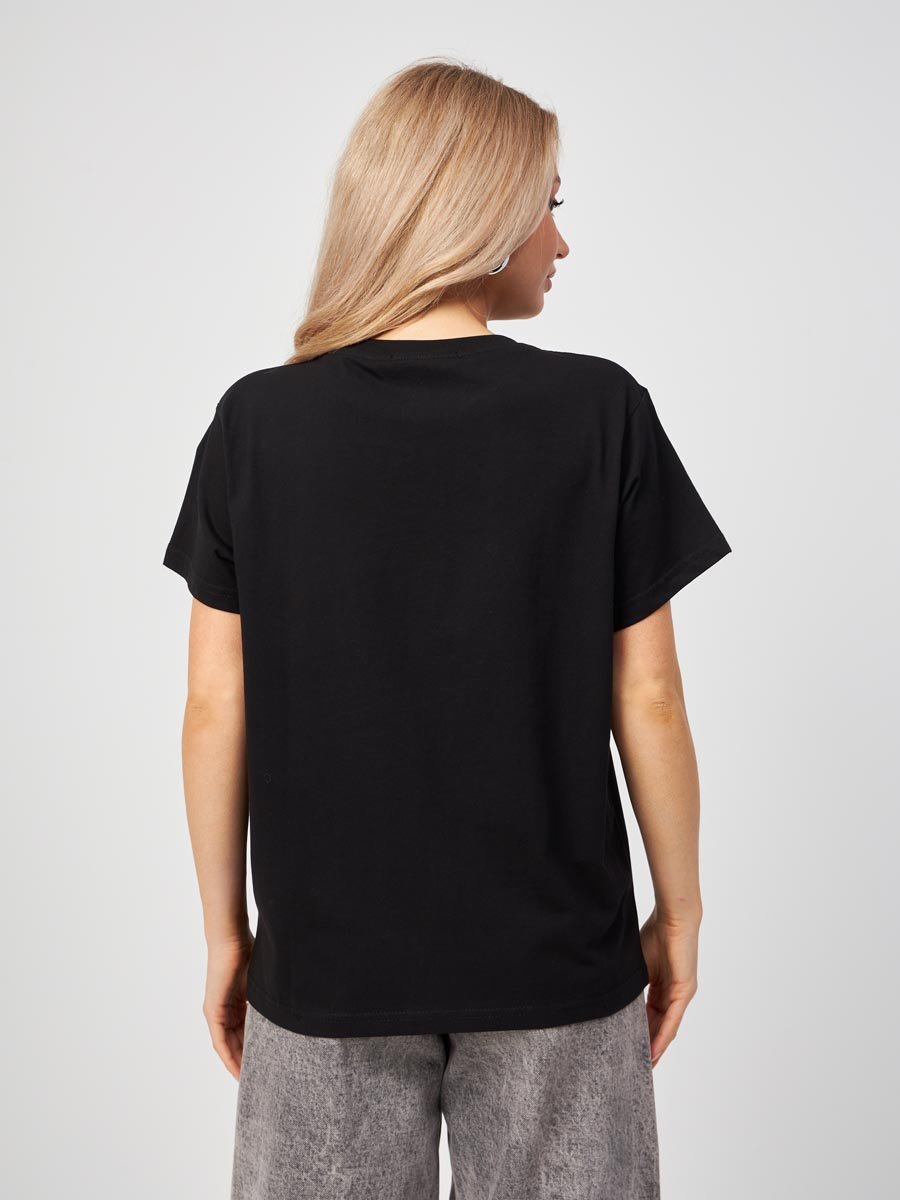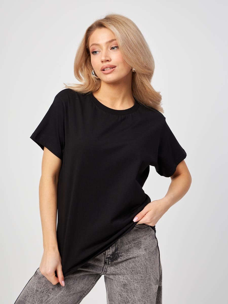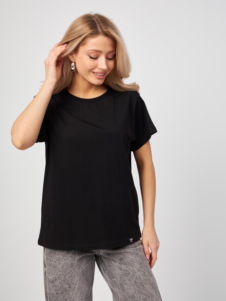 Женская футболка F5, Oversize fit (свободный силуэт), круглый вырез горловины, короткий цельнокроеный рукав. Выполнена из классического трикотажного полотна.