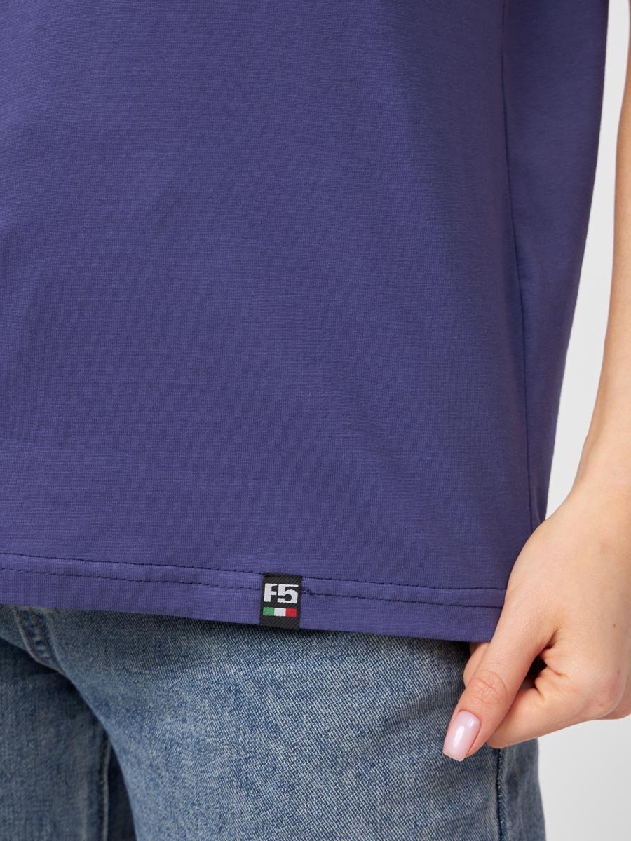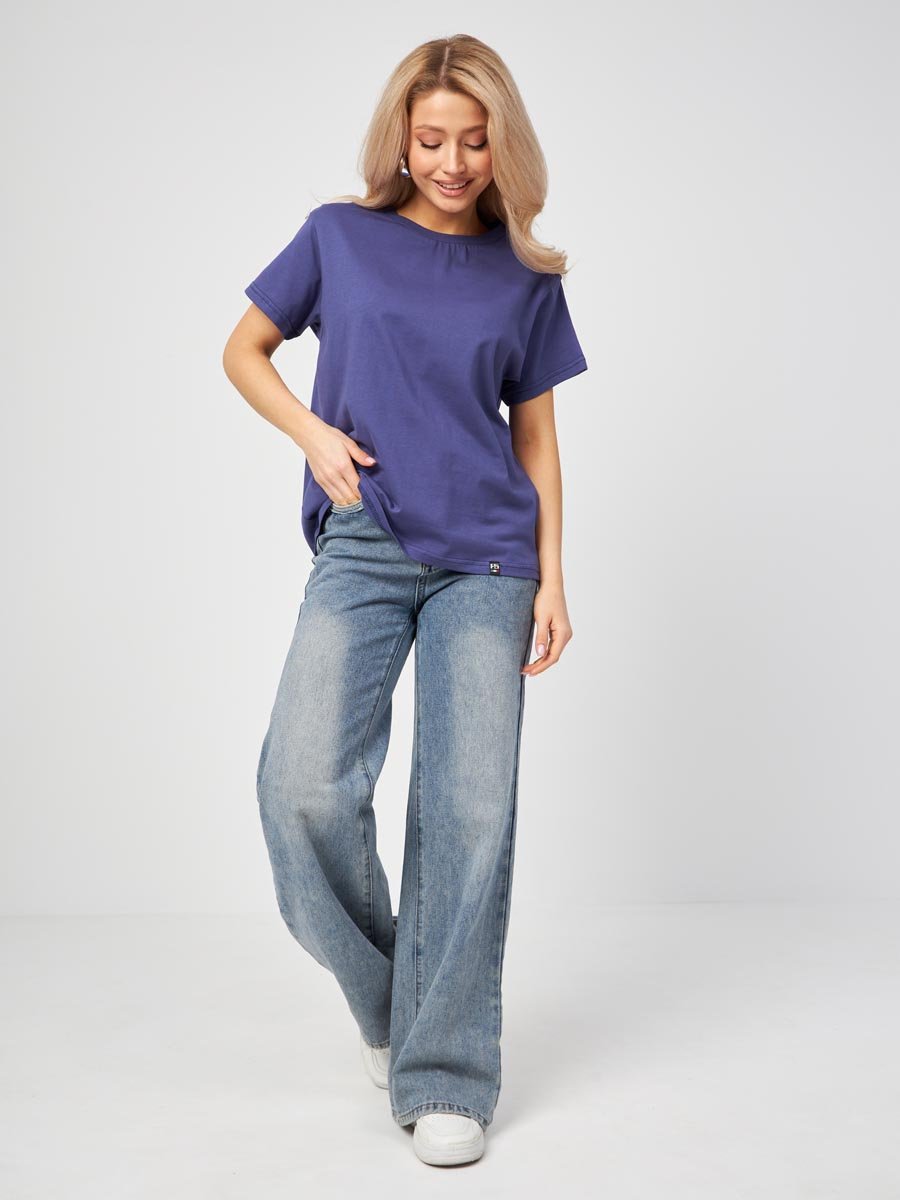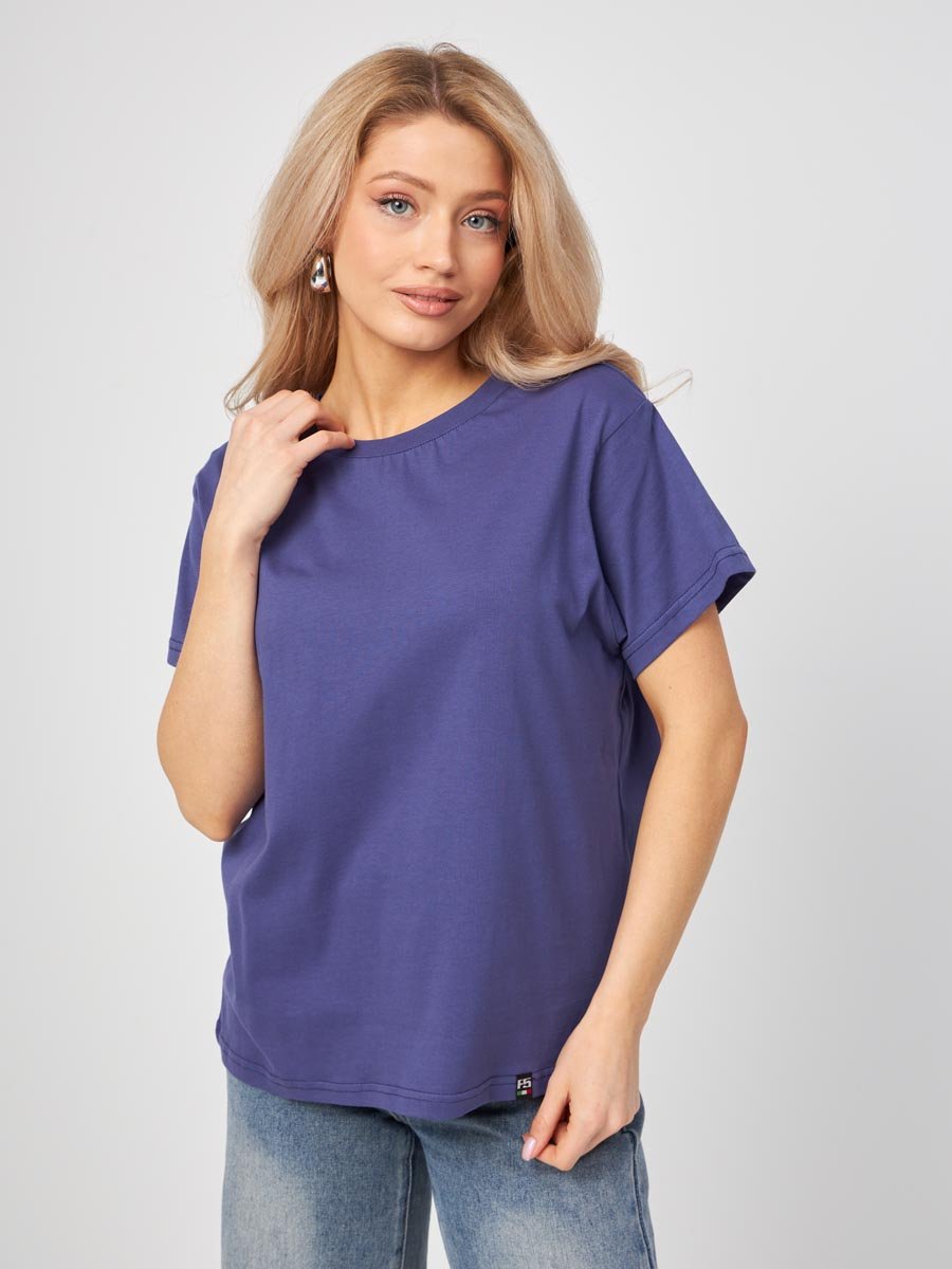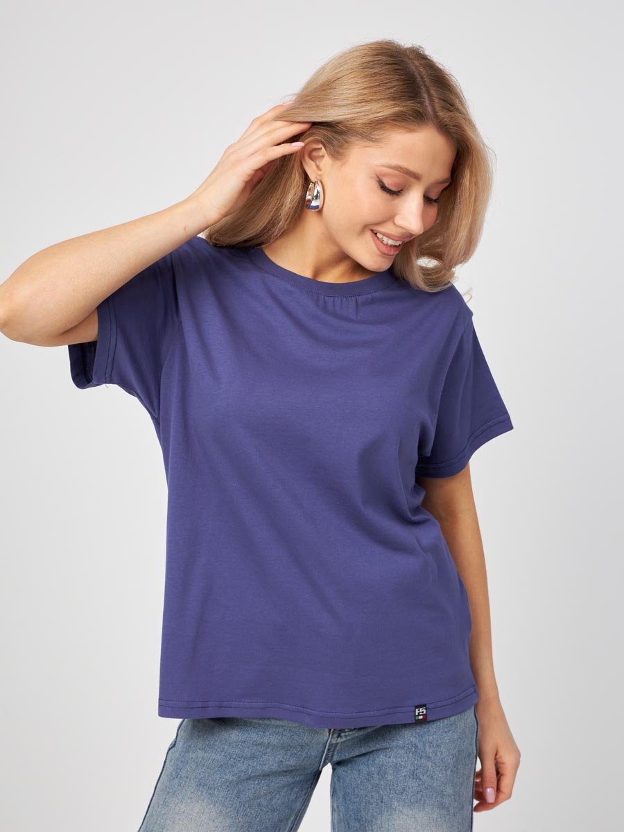 Женская футболка F5, Oversize fit (свободный силуэт), круглый вырез горловины, короткий цельнокроеный рукав. Выполнена из классического трикотажного полотна.