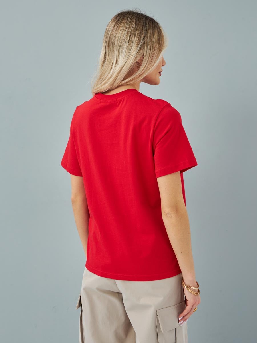 Женская футболка F5, Comfort fit (свободный силуэт), круглый вырез горловины, короткий рукав. Выполнена из классического трикотажного полотна.