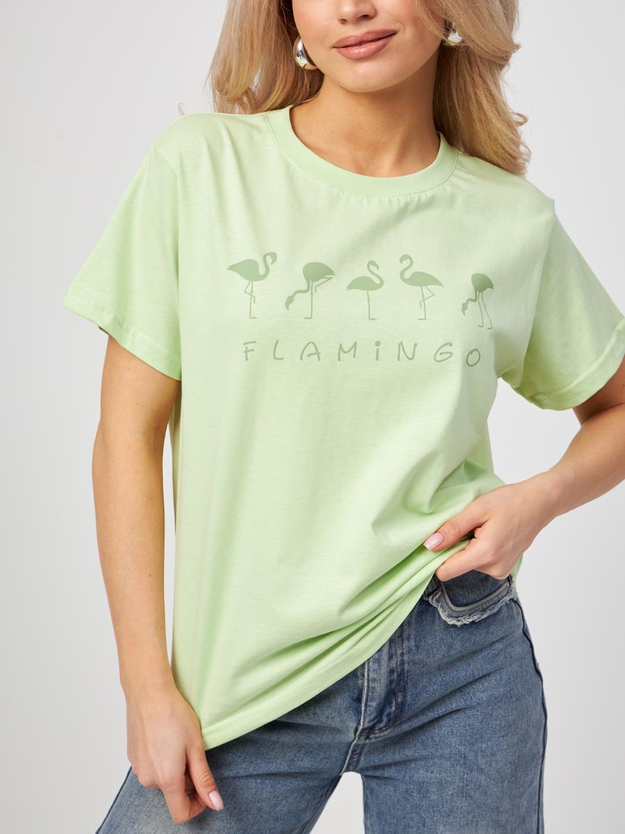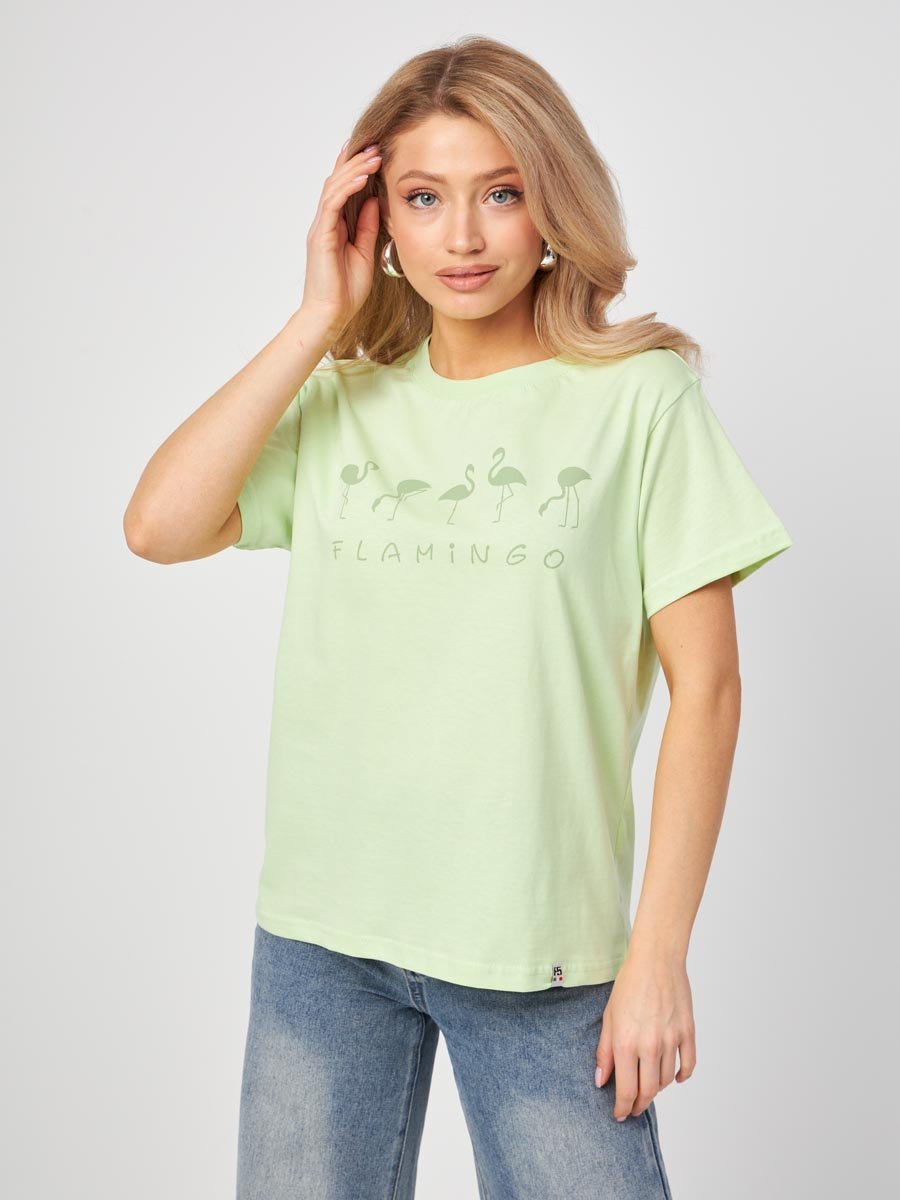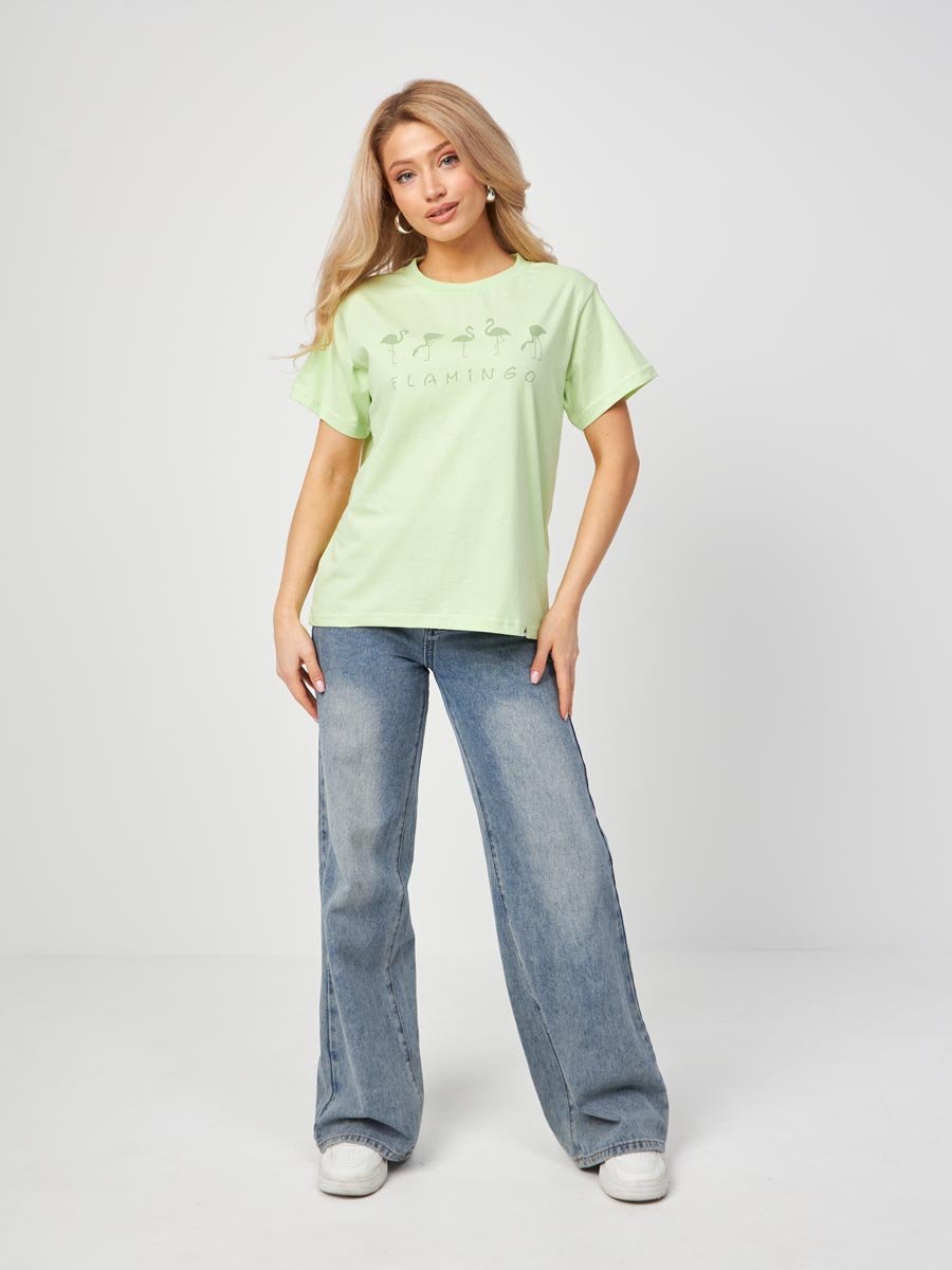 Женская футболка F5, Oversize fit (свободный силуэт), круглый вырез горловины, короткий цельнокроеный рукав. Выполнена из классического трикотажного полотна.