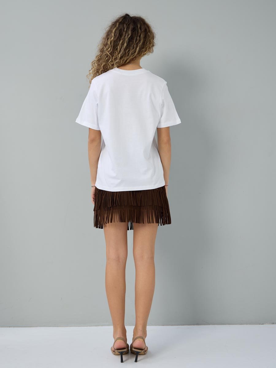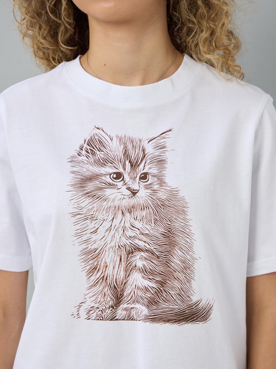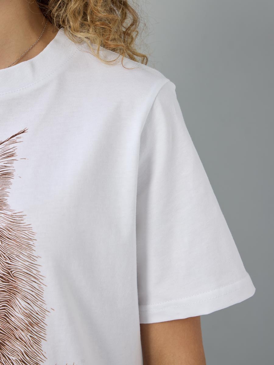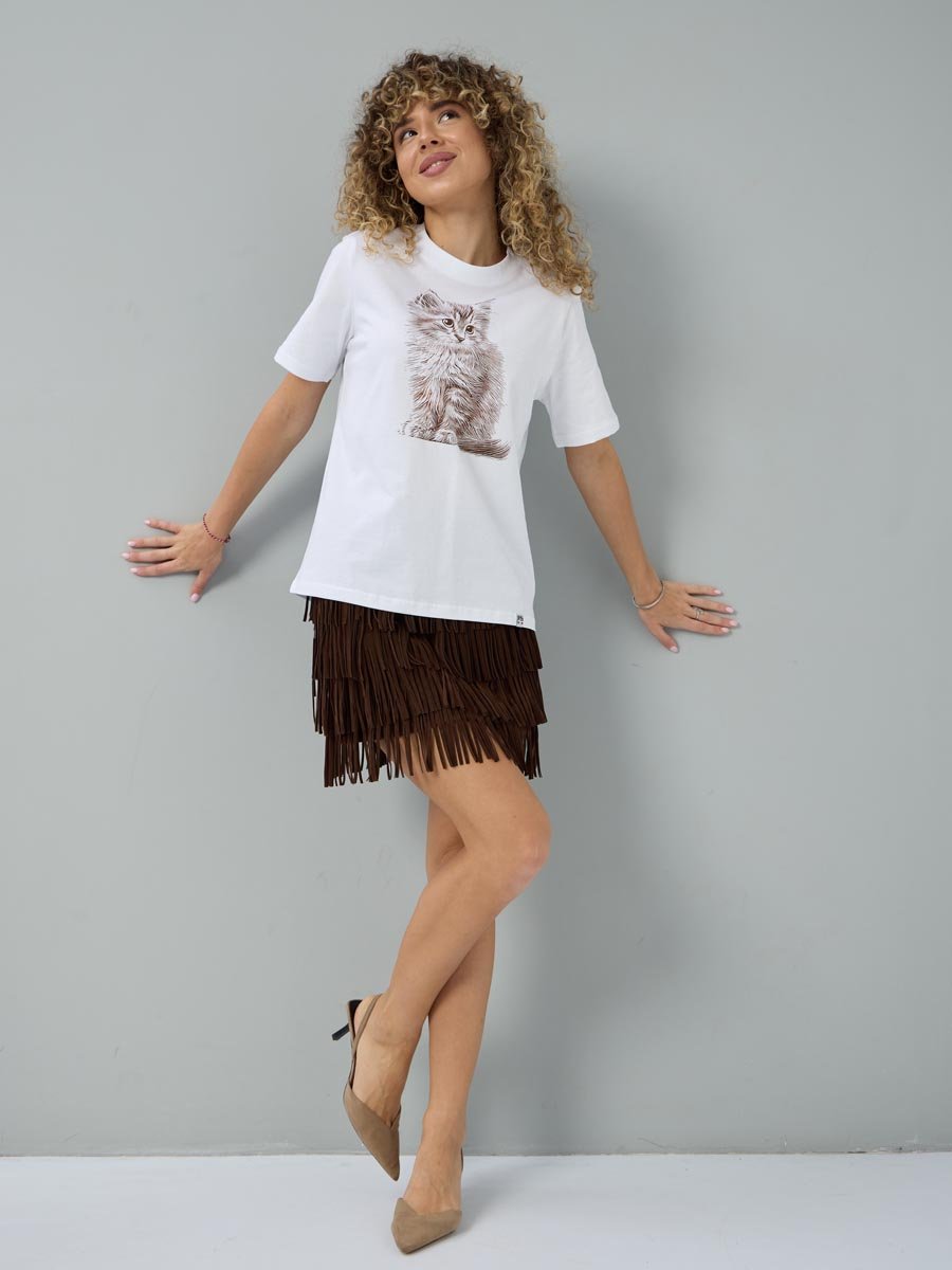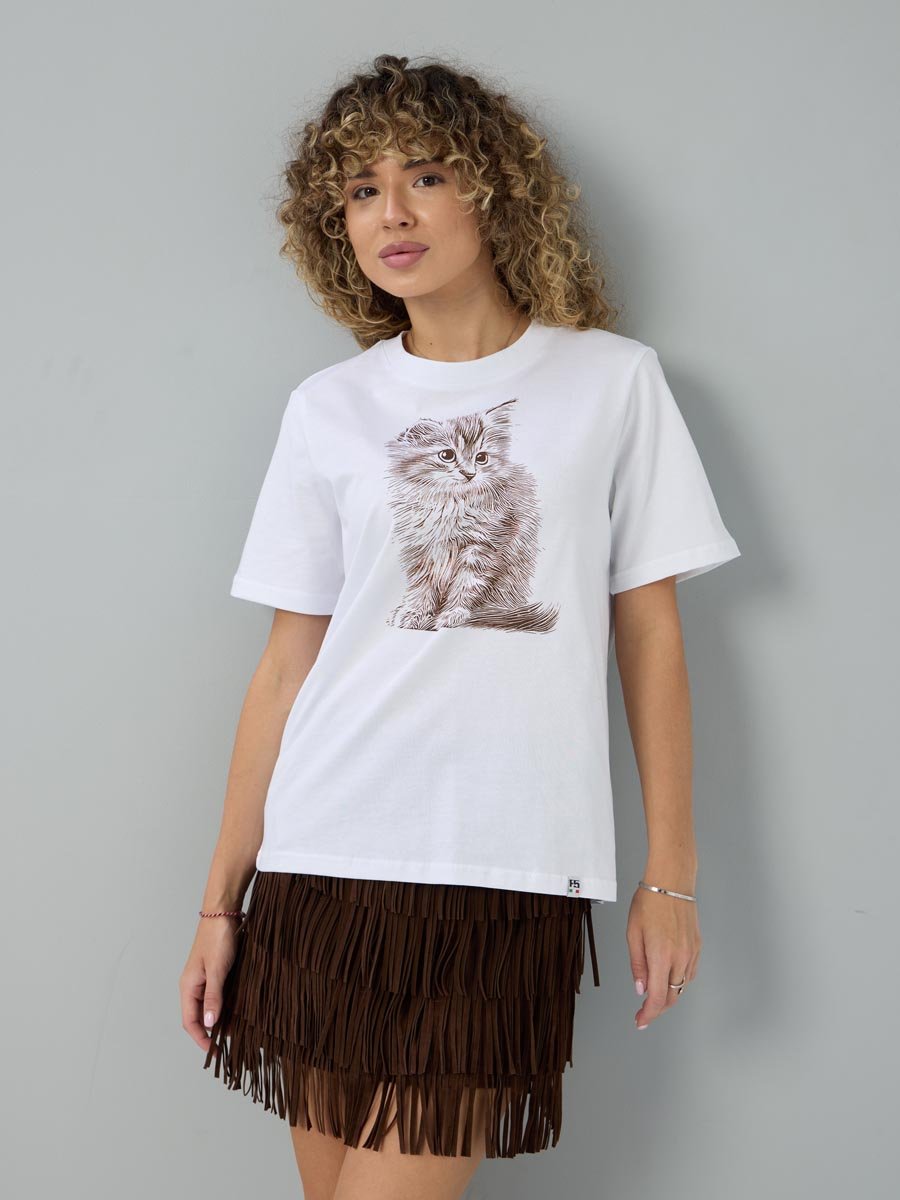 Женская футболка F5, Comfort fit (свободный силуэт), круглый вырез горловины, короткий рукав. Выполнена из классического трикотажного полотна.