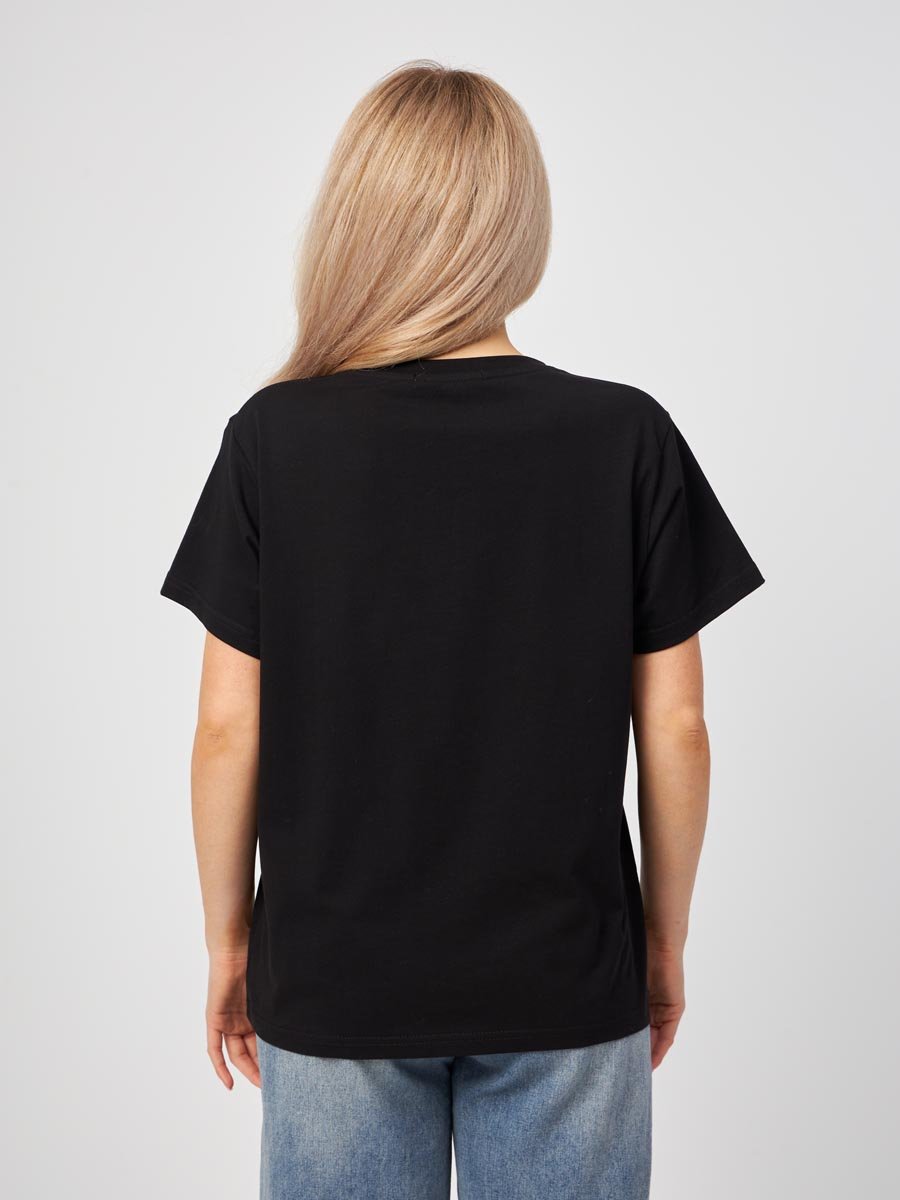 Женская футболка F5, Oversize fit (свободный силуэт), круглый вырез горловины, короткий цельнокроеный рукав. Выполнена из классического трикотажного полотна.