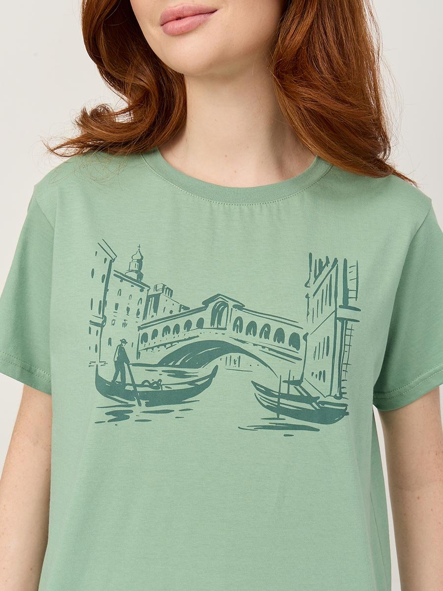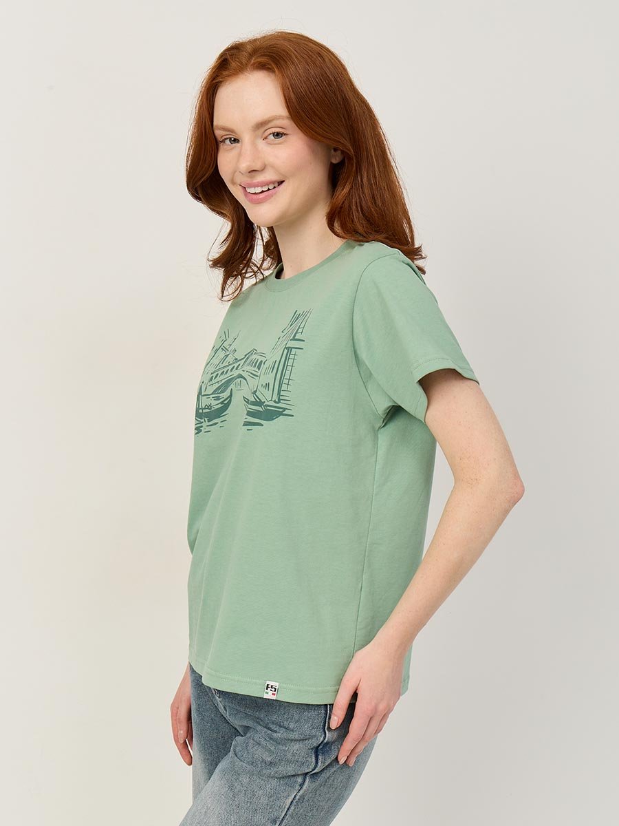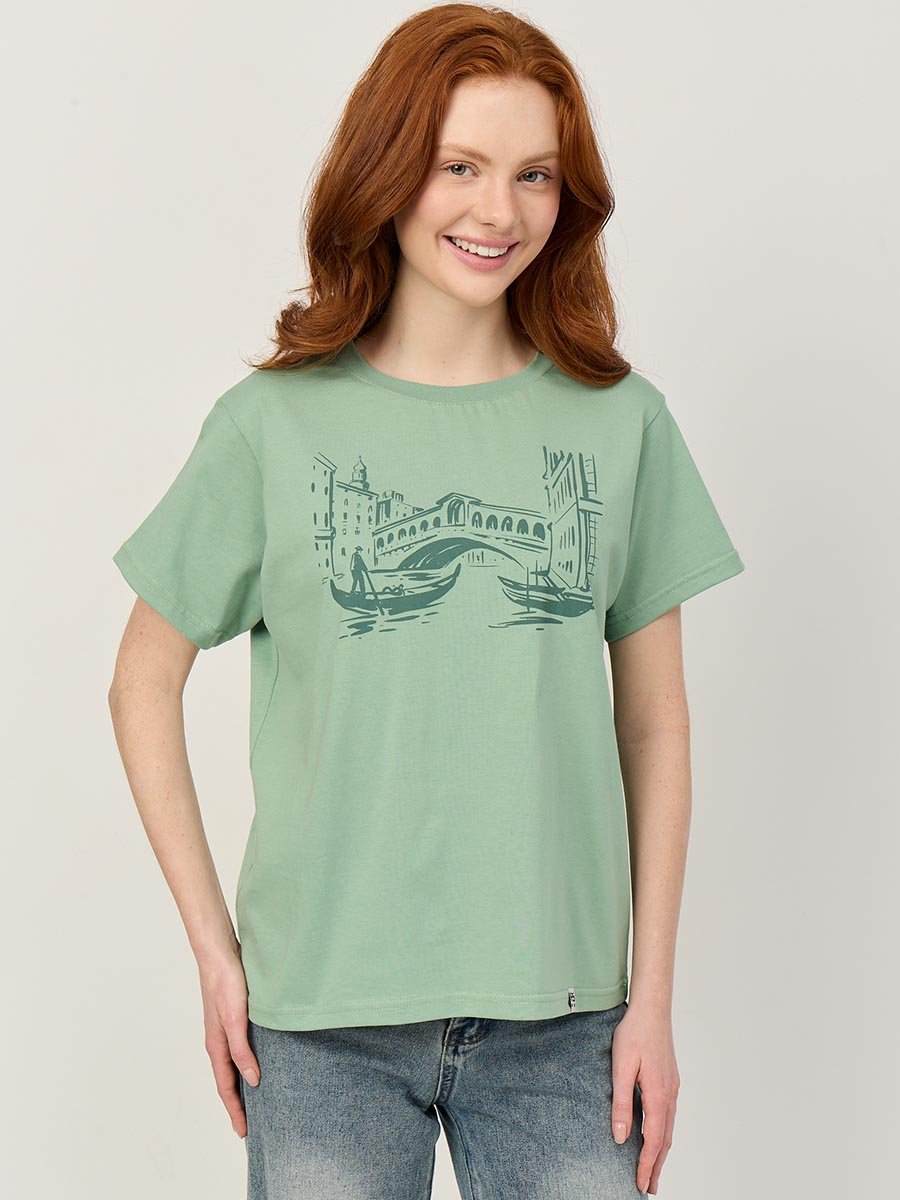 Женская футболка F5, Oversize fit (свободный силуэт), круглый вырез горловины, короткий цельнокроеный рукав. Выполнена из классического трикотажного полотна.