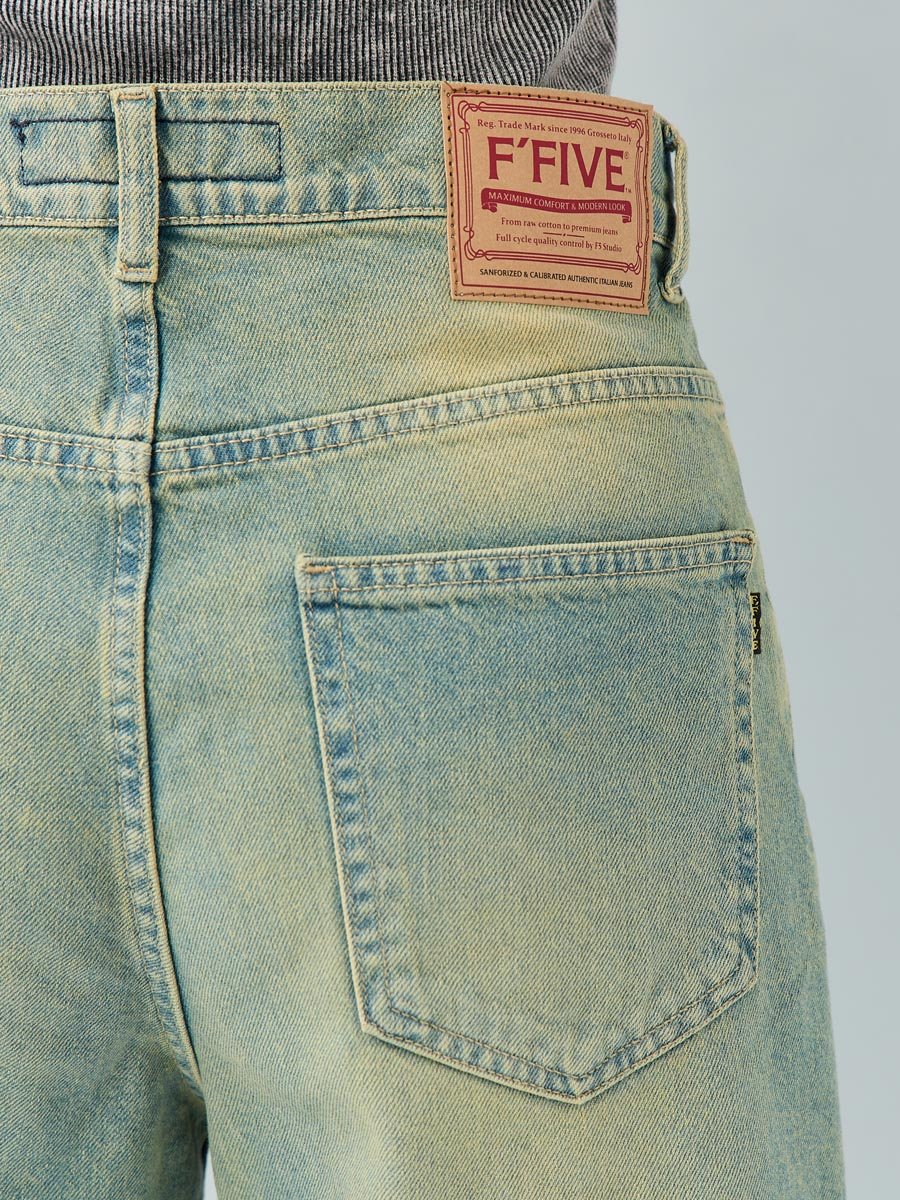 Изготовлены из традиционного хлопкового денима. Средняя стирка с эффектом потёртостей и "усов" спереди, а также с потёртостями сзади.